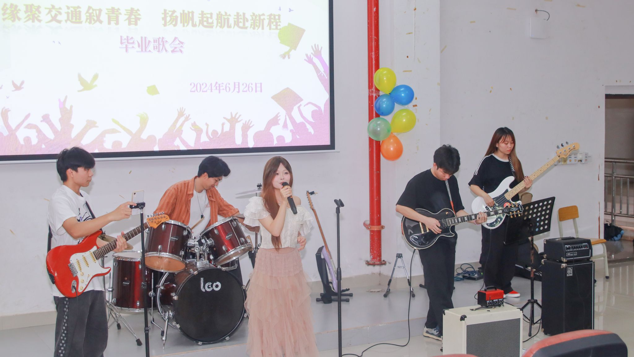 毕业歌会以乐队的精彩表演开启。交通工程学院党总支书记张海明致辞,向即将踏上逐梦之旅的2024届毕业生表示热烈的祝贺。交通工程学院2024届优秀毕业生代表卢振杰发言,回忆了自己与学校的青春故事。在本次歌会精彩的节目和温馨的氛围中,表演者用各自的方式表达着对毕业生、对母校、对未来的憧憬,赢得了在场观众的阵阵掌声和彼伏欢呼声,共同见证了这难忘的时刻,成功地为毕业生们送上了一份难忘的礼物。