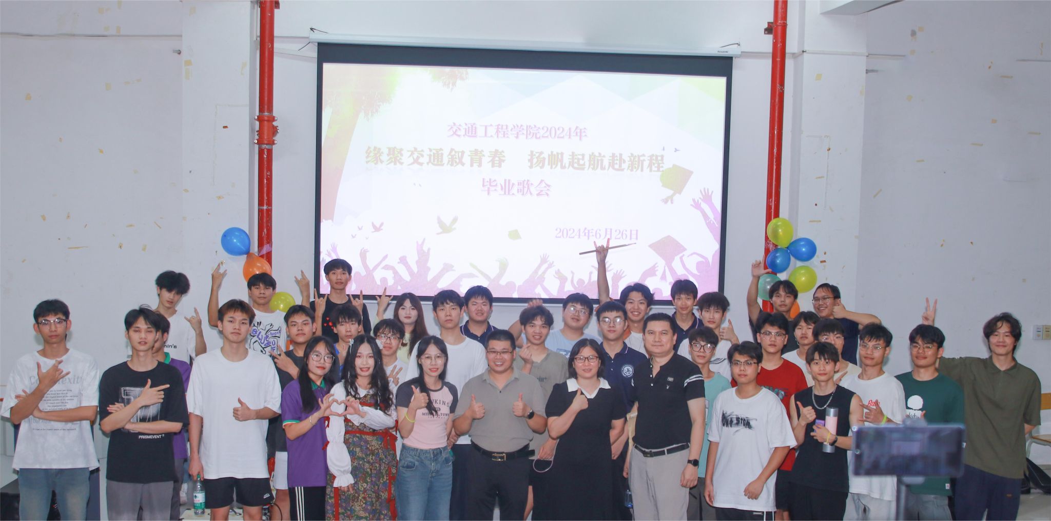 [本网讯]用音乐传递情感,用歌声留住回忆,为庆祝2024届毕业生顺利毕业,6月26日,交通工程学院在里建校区教学楼一楼报告厅隆重举办了2024年“缘聚交通叙青春 扬帆起航赴新程”毕业歌会。交通工程学院党总支书记张海明、团委书记黄绿汀、学务干事梁海燕、辅导员代表、毕业生代表以及学生代表出席了本次歌会。