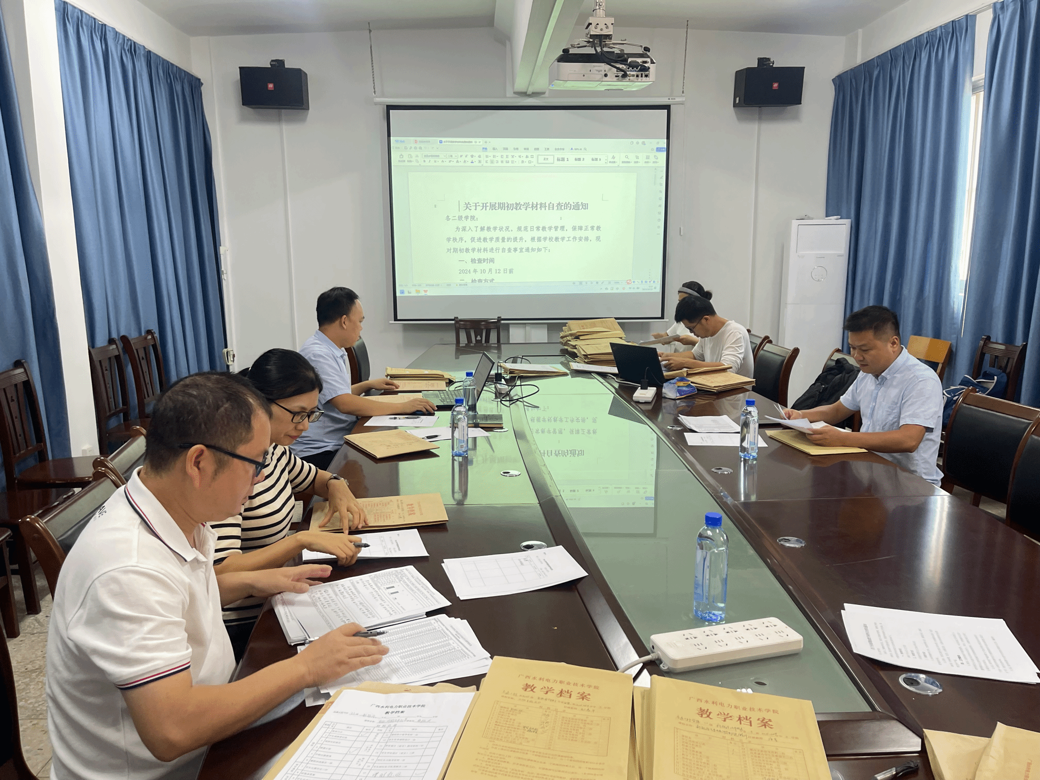 教务处罗敏伟老师抽查了部分材料,并指出了检查中发现的不足,并针对试卷题量、批阅等方面提出了建设性意见,他希望学院对照标准、严格要求,进一步加强教学文件规范管理,加强教学过程监管,不断提升教学质量和教学管理水平。