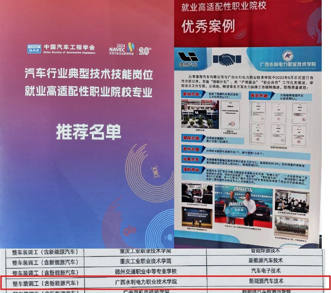 会议期间,发布了“汽车行业典型技术技能岗位就业高适配性职业院校专业推荐名单”,pp电子交通工程学院新能源汽车技术专业入选,这是对我院专业建设与学生就业工作的高度肯定。同时,pp电子与北京理想汽车有限公司的校企合作案例作为“就业高适配性职业院校优秀案例”在会场展出,与国内一众高水平院校共同展示。