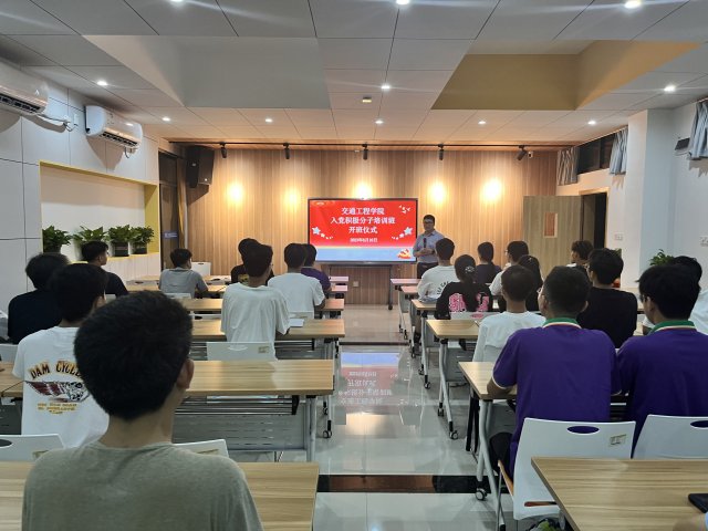 [本网讯]为深入推进学习贯彻习近平新时代中国特色社会主义思想主题教育,引导学生全面领会党的二十大精神,加强党组织建设,适应新时期对党员的新要求,切实做好入党积极分子的培养、教育工作。6月16日晚,交通工程学院在“一站式”社区多功能厅举办2023年入党积极分子培训班开班仪式。出席本次开班仪式的有交通工程学院党总支书记张海明,学生党支部书记梁展榕、宣传委员覃祖攀、组织委员张淑芳、辅导员姜美婷以及交通工程学院全体入党积极分子。