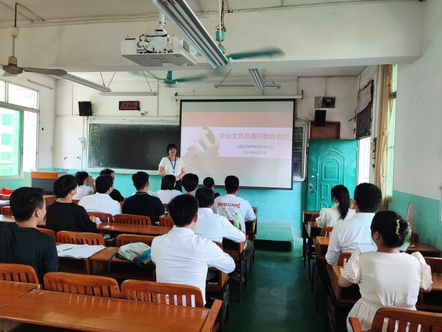 [本网讯]为深入学习贯彻习近平新时代中国特色社会主义思想,推动主题教育走深走实,加强毕业生党员离校教育,进一步强化广大毕业生党员的党性意识、宗旨意识和组织纪律观念,充分发挥毕业生党员在毕业离校环节中的先锋模范作用,6月29日上午,交通工程学院学生党支部在长堽校区第1教学楼402教室开展以“广大青年要在奋进新征程中争当先锋”为主题的2023届毕业生党员教育。学生党支部全体党员参加本次会议,会议由支部书记梁展榕主持。