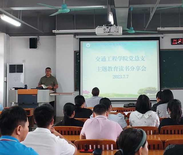 [本网讯]为认真学习贯彻党的二十大精神,推进学习贯彻习近平新时代中国特色社会主义思想主题教育走深走实,交通工程学院党总支于7月7日下午在四教7-8教室召开主题教育读书分享会,全体党员和教师参加了此次活动。 学院党总支张海明书记分享了《习近平著作选读》第一卷中的篇章《实干才能梦想成真》,这是习近平总书记在同全国劳动模范代表座谈时讲话的一部分,文中指出:“真抓才能攻坚克难,实干才能梦想成真。”实干是理论之源、梦想之翼、幸福之基,结合学院实际,每位教职工要大力弘扬真抓实干、埋头苦干的良好风尚,克服困难,出实策、鼓实劲、办实事,推动学院各项事业发展。