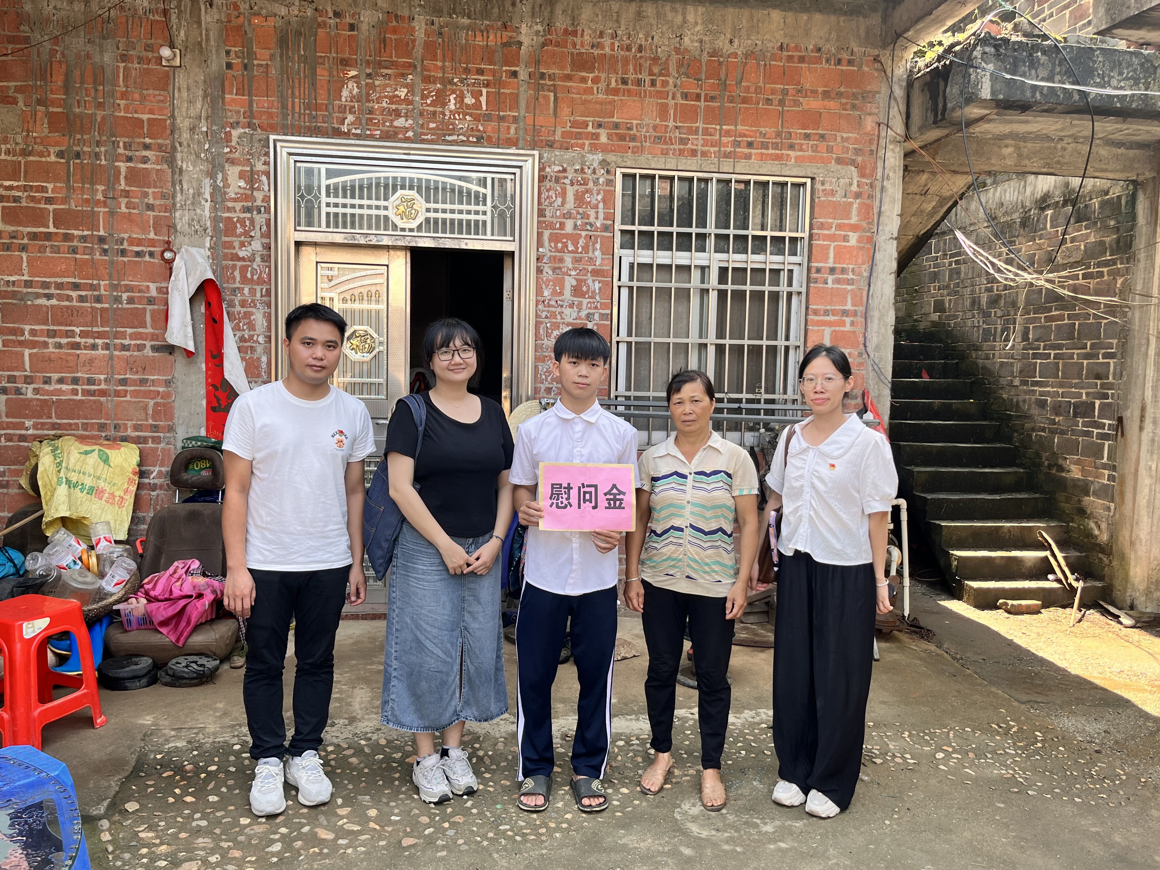 [本网讯]为深入开展学习贯彻习近平新时代中国特色社会主义思想主题教育,践行党的二十大报告中教育高质量发展的理念,切实做好家庭经济困难学生精准帮扶,把党和国家的资助政策和关心关爱送到学生家里,构筑家校沟通的温暖桥梁,7月25日—7月26日,交通工程学院组织开展2023年暑期家庭经济困难学生家访慰问工作,学生党支部书记梁展榕、支部宣传委员覃祖攀及分团委学生会副书记梁爱婵对我院钦州市、北海市的6名家庭经济困难学生进行走访慰问。