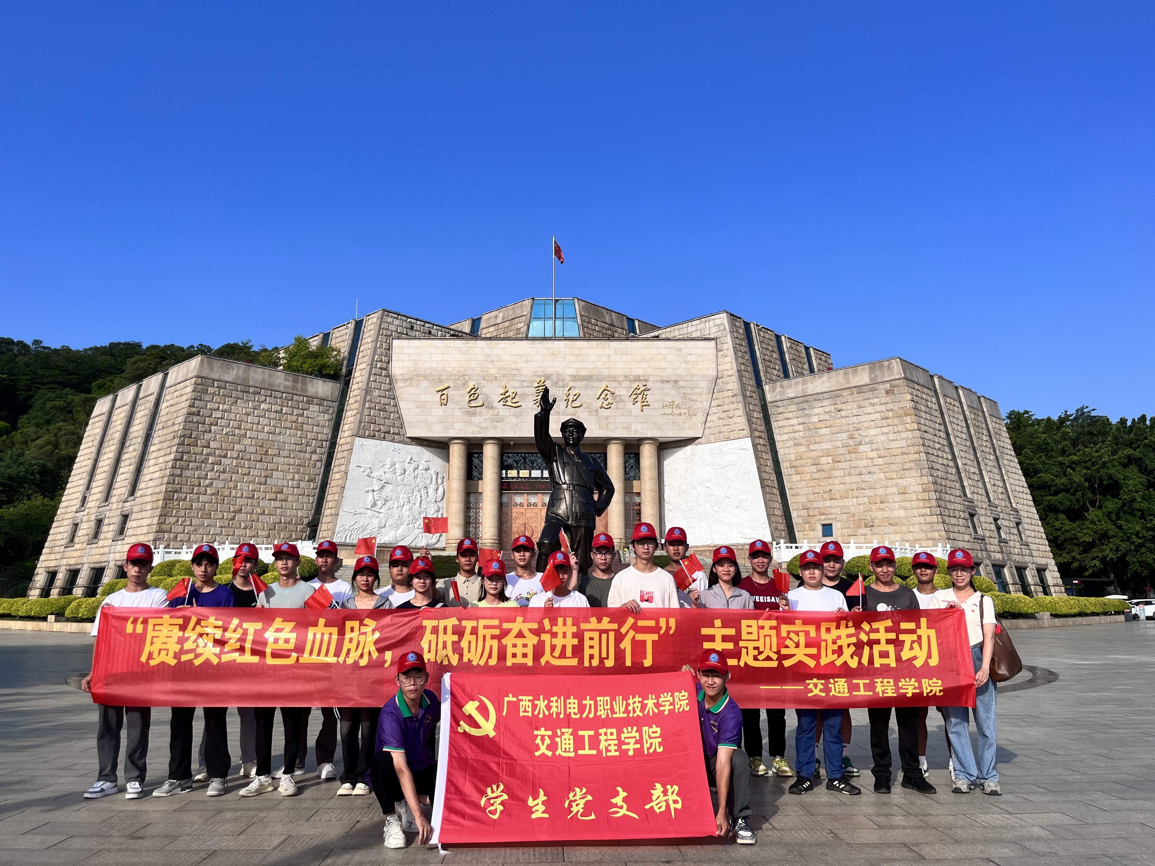 [本网讯]为提升资助育人实效,进一步教育引导学生坚定理想信念,锤炼自立品格,汲取奋进力量,交通工程学院学生党支部组织获奖受助学生于9月1日至3日走进百色、凌云、东兰等革命老区开展了为期3天的“赓续红色血脉,砥砺奋进前行”主题党日活动。活动由交通工程学院团委副书记梁爱婵老师带队,24名受资助学生参加。