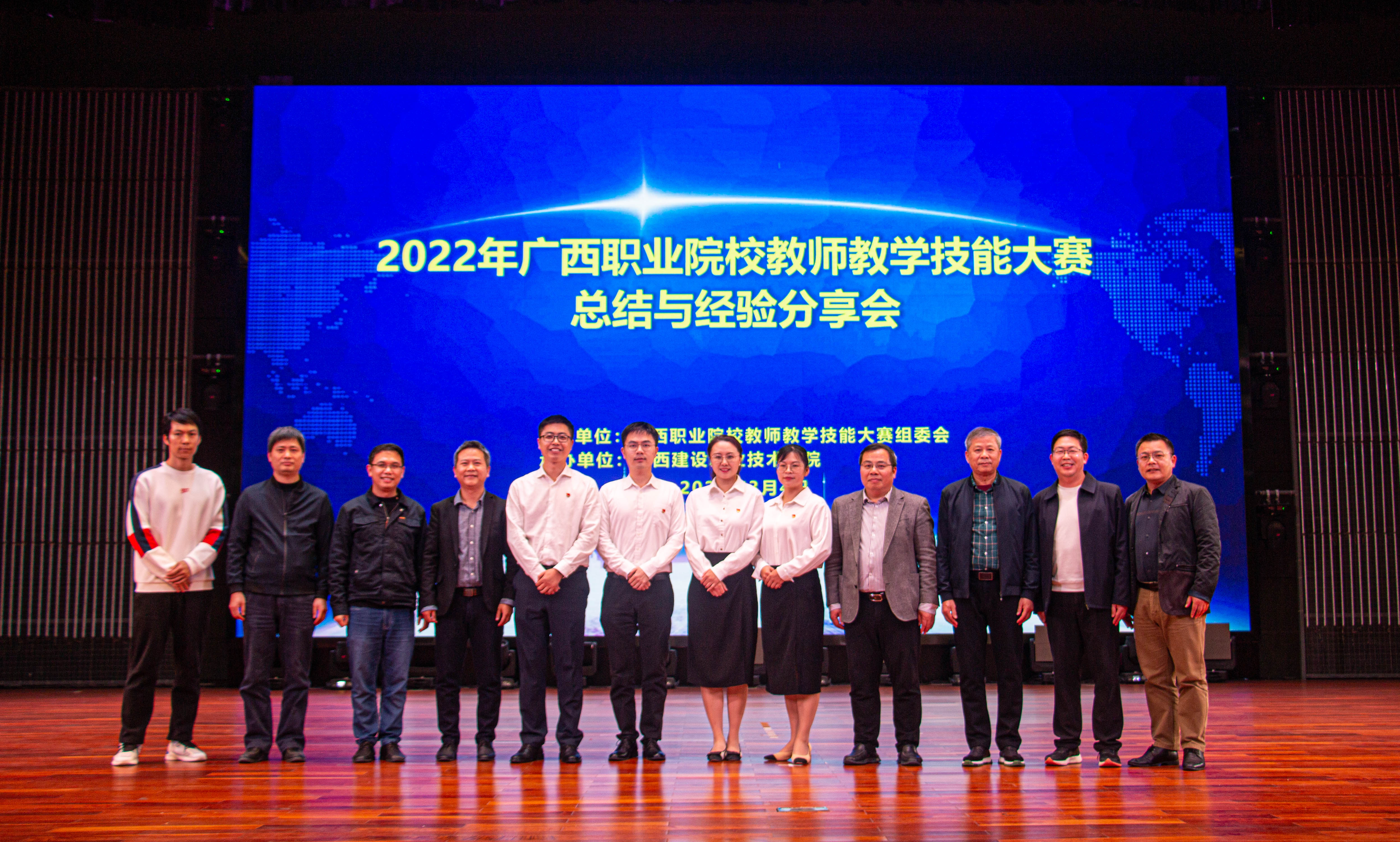 [本网讯]3月4日,2022年广西职业院校教师教学技能大赛总结与经验分享会在广西建设职业技术学院举办。学校刘存香副校长受邀在会上分享学校教师参加教学能力竞赛的经验;唐善德、李文娟、解双、黄毅教师团队作为2022年全国职业院校技能大赛教学能力比赛一等奖获奖团队,受邀为与会的全区职业院校教师代表进行参赛经验分享。