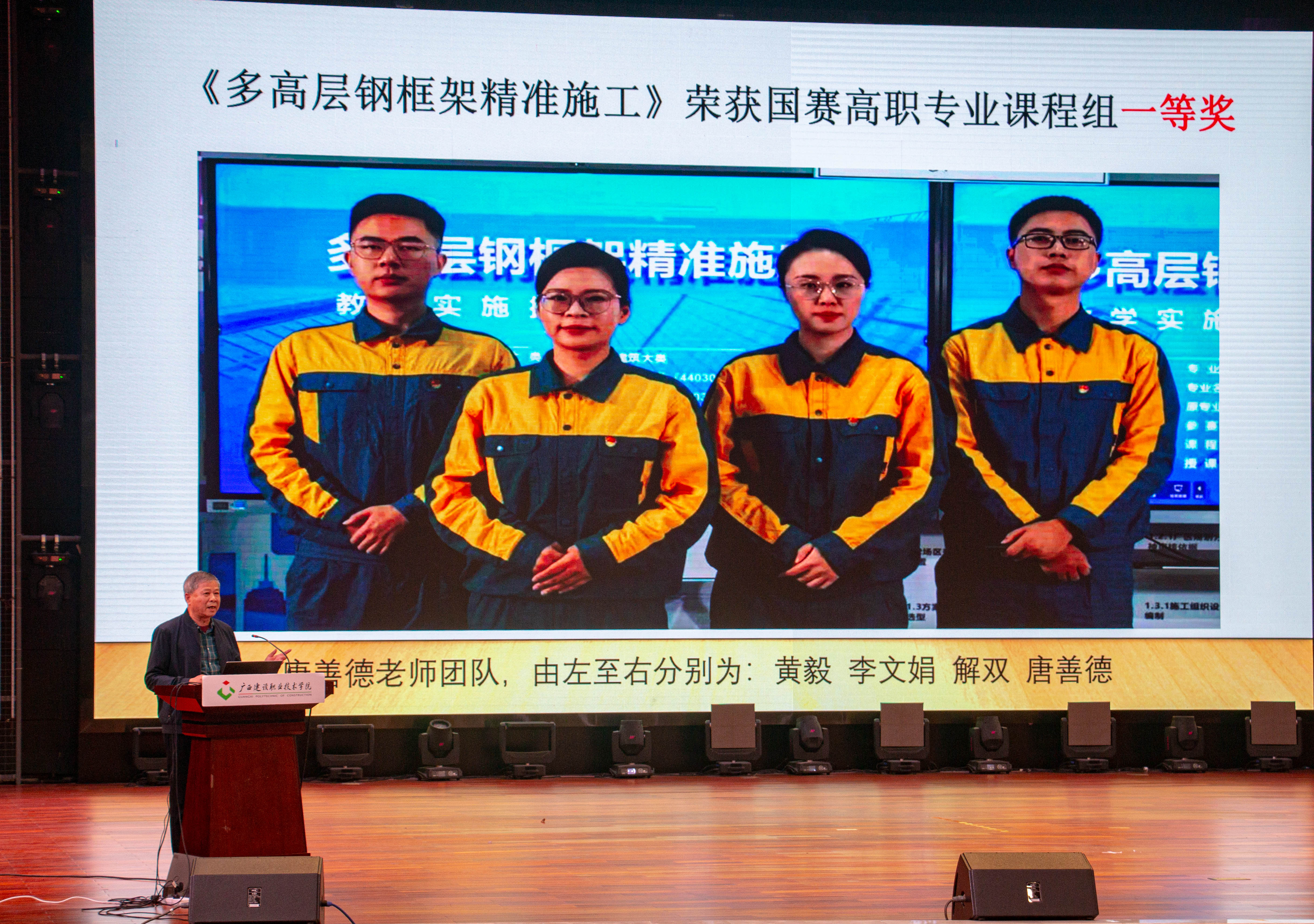 会议邀请了4个参加2022年全国职业院校技能大赛教学能力比赛及2022年广西职业院校教学技能竞赛获奖作品进行展示。唐善德、李文娟、解双、黄毅教师团队就获奖作品《多高层钢框架精准施工》进行了分享,现场展示了教学实施报告,分享了备赛经验。信息化专委会赛事专门委员会顾问胡华进教授进行了作品点评。