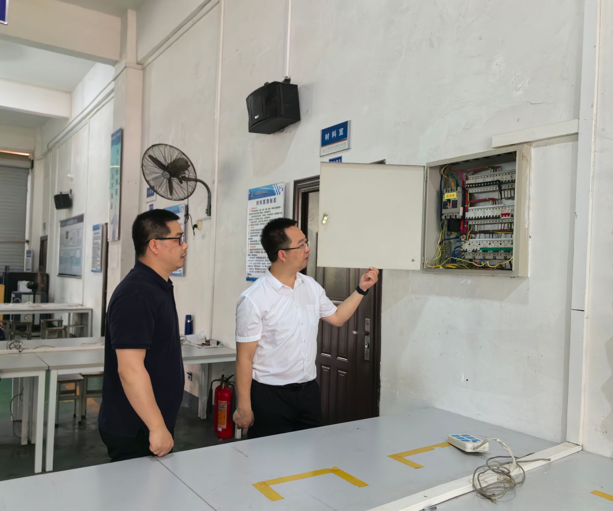 [本网讯]为进一步加强学校实训室安全管理工作,消除安全隐患,进一步提升实训室安全管理水平,4月28日下午,学校副校长周涛带领后勤管理处处长余娜、教务处处长助理钟霞、值周中层领导梁中超以及相关工作人员对学校实训室安全开展了现场检查。