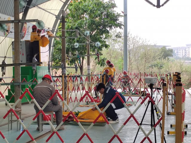 3月18-19日,来自柳州广西兆泰送变电工程集团有限公司、广西西能电气有限公司带电作业班组人员在pp电子电力实训楼和电力实训基地参加了理论和实操考试。