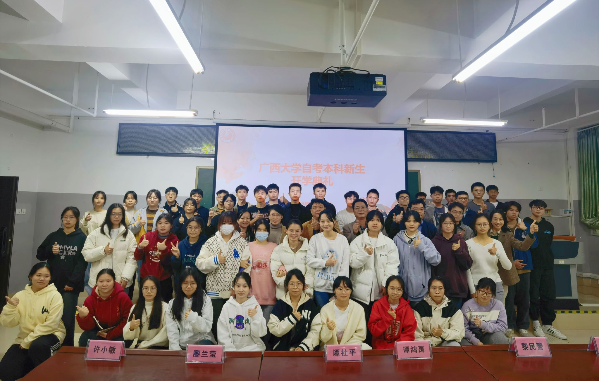 在典礼上,谭社平院长发表了热情洋溢的欢迎辞,他分享了自己的自学考试经历,并激励同学们科学规划人生,保持学习热情,不断拼搏进取。西大继教院谭鸿禹副院长则介绍了广西大学的发展历程,他勉励同学们树立信心、奋发图强,以实现个人价值和社会责任。西大自考中心廖兰莹副主任分享了提高自学考试学习效率的方法。