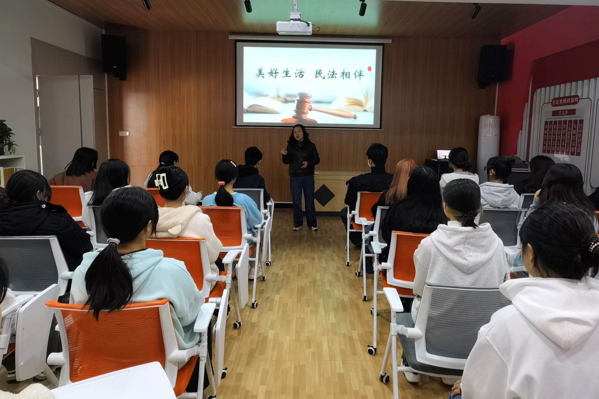 [本网讯]为深入学习贯彻党的二十大报告关于“坚持全面依法治国,推进法治中国建设”的重大决策部署,学习宣传贯彻习近平法治思想,12月28日上午,马克思主义学院在长堽校区“一站式”学生社区组织开展了“美好生活 民法相伴”——民法典主题宣传教育活动。“四史”课教学团队教师刘珺负责本次活动组织工作,2023级会计4班的32名同学参加了本次活动。