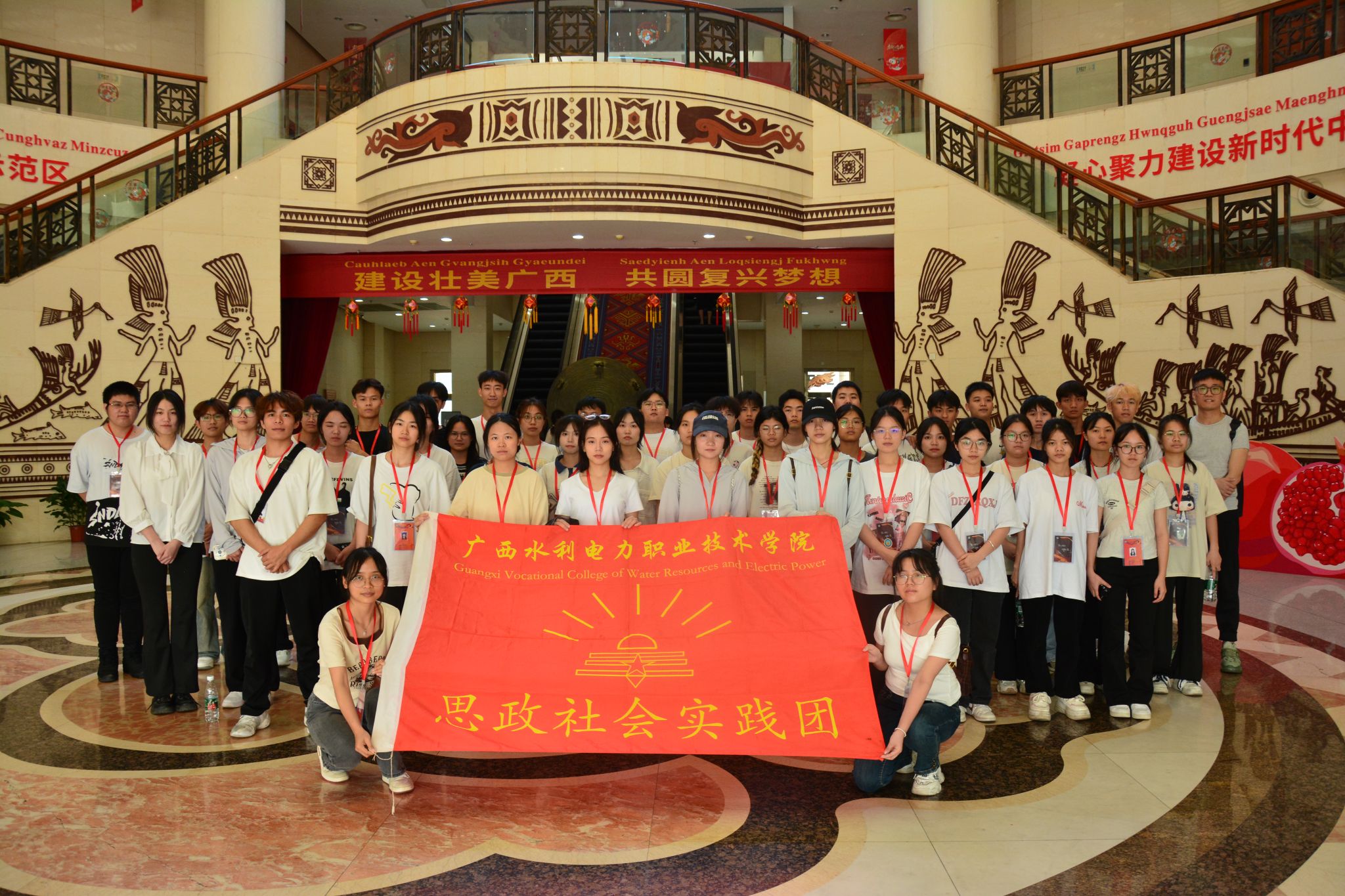 三年前习近平总书记在广西考察期间,来到广西民族博物馆,参观壮族文化展。同学们沿着习近平总书记的足迹深入了解广西的历史和民族风情,参观了《穿越时空的鼓声——铜鼓文化展陈列》《五彩八桂——广西民族文化陈列》两大主题展厅,每到一处,大家都仔细观看文物展品,通过璀璨多彩的民族文化呈现、清新鲜活的民族风情展示,师生们深切感受到了广西民族文化的独特魅力以及中华民族共同体意识的强大凝聚力。通过参观广西民族博物馆,大家充分感受到了广西深厚、独特的文化底蕴和丰富多样的民族文化特色,加深了对广西各民族文化的认识和理解,强化了中华民族共同体意识,坚定了共创中华民族绵长福祉,共享民族复兴伟大荣光的信念。