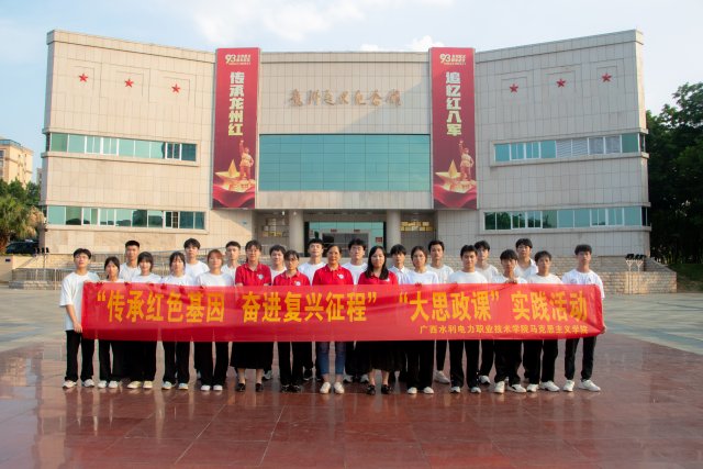 6月2日下午,师生一起走进龙州起义纪念馆,在讲解员的带领与讲解下,师生们依次参观了《边关风云》《赤色龙州》《解放左江》《丰碑永存》四个展现龙州起义这一波澜壮阔历史的展厅。在龙州起义纪念馆的参观学习中,师生们深刻感悟到龙州起义是我们党在少数民族地区领导并组织的武装起义之一,是我们党在西南边疆竖起的一面“工农武装割据”的光辉旗帜,谱写了一曲壮、汉、瑶、苗等各族军民团结战斗的胜利凯歌。6月3日,师生一行到红八军军部旧址参观学习。师生们一起登“红军楼”,聆听讲解员为师生们详细讲述红八军军部的历史故事,并在邓小平当年亲自栽下的柏树旁合影,最后大家又一起来到“红军井”旁忆苦思甜。