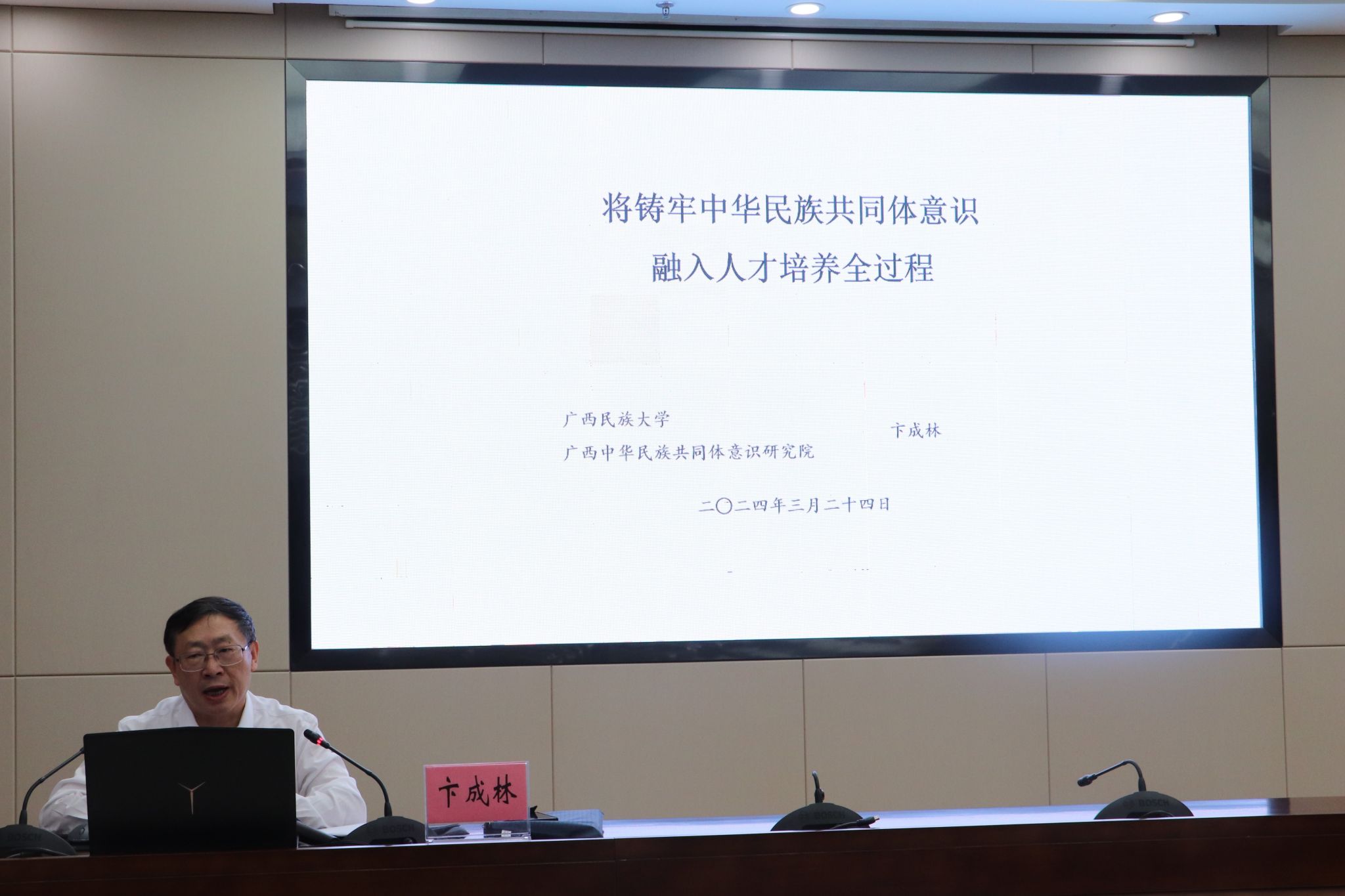 本次专题培训邀请了两位专家进行专题辅导。广西民族大学党委书记、广西中华民族共同体意识研究院院长卞成林教授以《将铸牢中华民族共同体意识融入人才培养全过程》为题,从铸牢中华民族共同体意识的重要性、习近平总书记关于铸牢中华民族共同体意识的重要论述、铸牢中华民族共同体意识的深刻内涵、将铸牢中华民族共同体意识融入人才培养全过程四个方面进行讲授,高屋建瓴、深入浅出、生动形象地为高职院校进一步开展铸牢中华民族共同体意识教育指明了方向、提供了思路。中共广西区委党校党史党建教研部尹红英副教授以《信仰:中国共产党为什么“能”的精神密码》为题,结合党的百年奋斗历史从我们应当遵从什么样的信仰、为什么要坚定马克思主义信仰和如何坚定马克思主义信仰三个方面娓娓道来、声情并茂,为全体参训学员开展了一次深刻的理想信念教育。本次培训还安排了现场教学和素质拓展活动环节。学员们沿着习近平总书记在广西视察的足迹,在金海湾红树林生态保护区感悟习近平生态文明思想。在海丝非物质文化遗产体验馆体会习近平总书记对广西重要要求要求,进一步理解了“解放思想、创新求变、向海图强、开放发展”的深刻内涵。