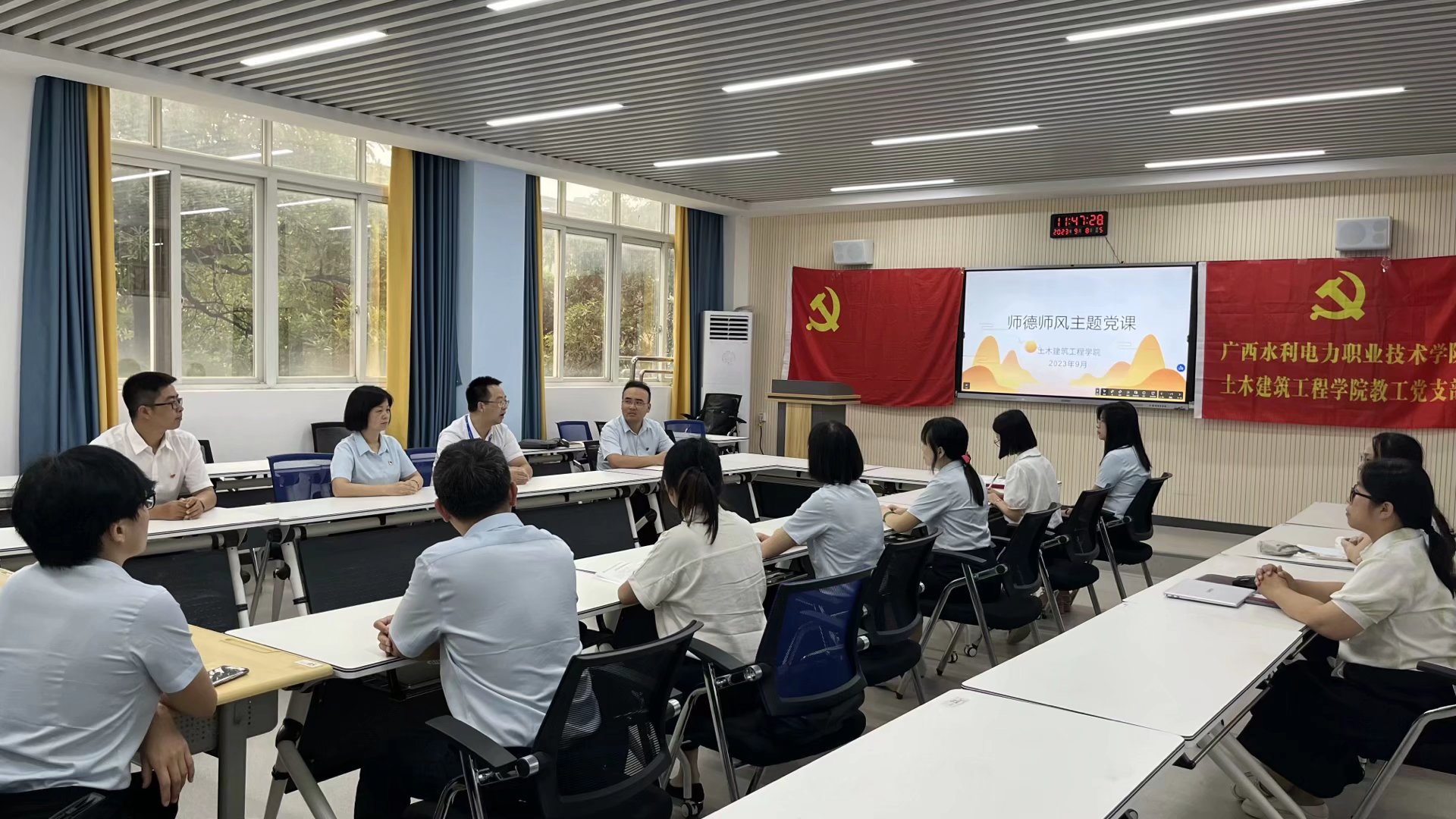 [本网讯]为落实立德树人根本任务,压实师德师风建设主体责任,深入学习贯彻习近平新时代中国特色社会主义思想,9月8日上午,学校副校长周涛深入土木建筑工程学院教工党支部,结合“躬耕教坛,强国有我”师德论坛主题,以《坚守教育初心,铸牢师德师风》为题为党员讲授专题微党课。