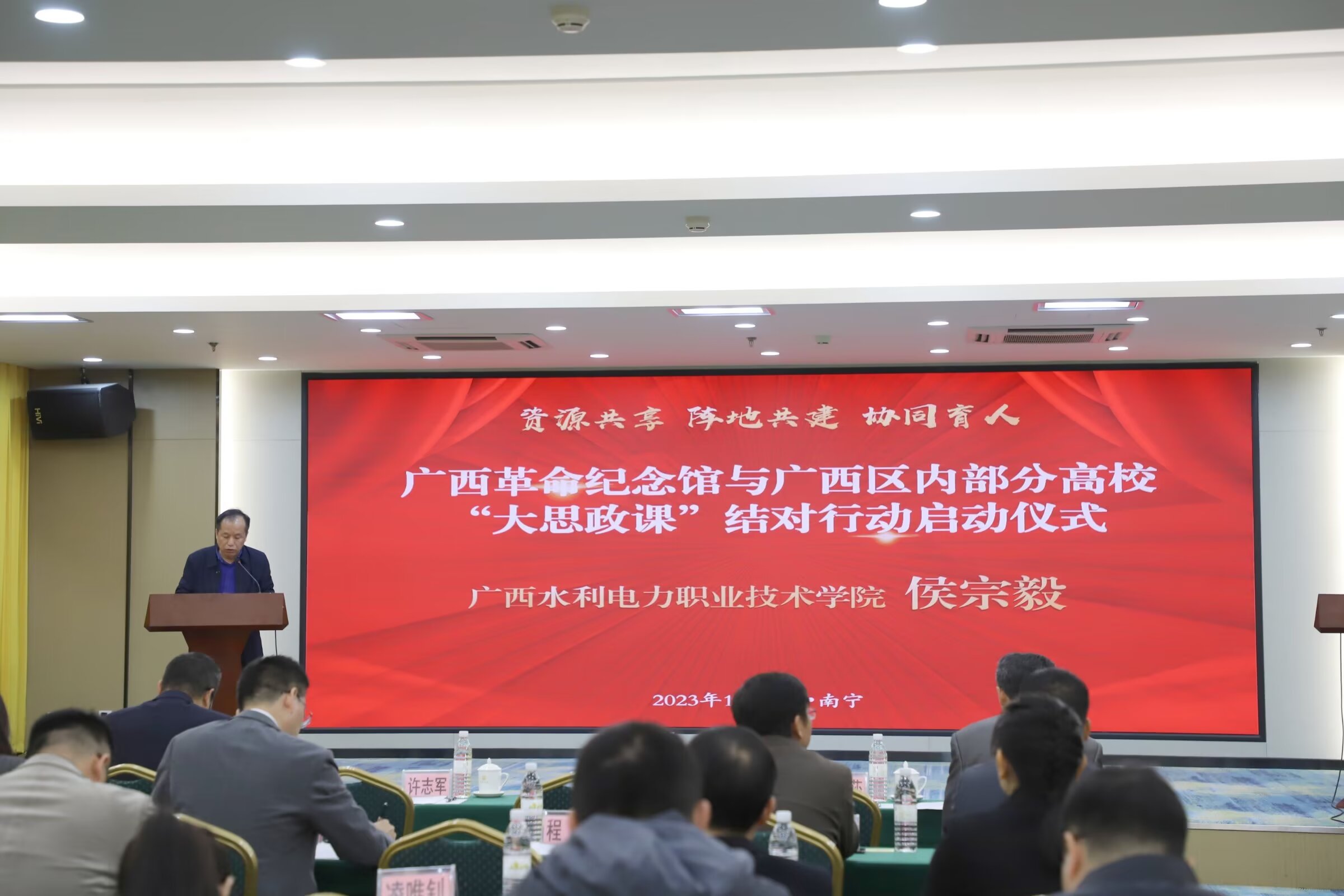 [本网讯]为贯彻落实教育部《关于组织开展高校与“大思政课”实践教学基地结对行动的通知》(教社科厅函〔2023〕26号),切实推进“大思政课”建设走深走实,12月6日上午,广西革命纪念馆与广西区内部分高校“大思政课”结对行动启动仪式在南宁凤凰宾馆举行。pp电子党委副书记侯宗毅、马克思主义学院院长李春萌、副院长徐坚及教师代表参加了启动仪式。