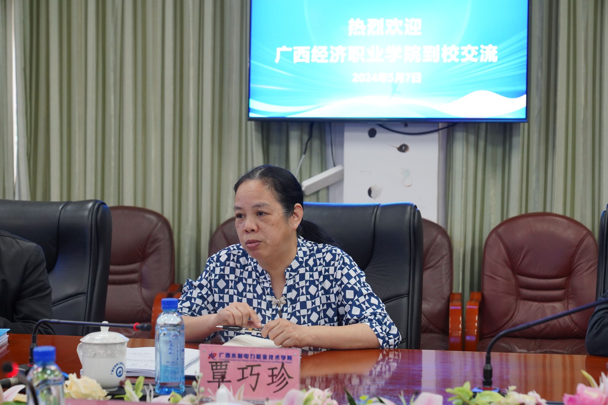 覃巧珍对学校的热情接待与结对帮扶工作表示感谢,介绍了广西经济职业学院师资队伍建设基本情况,希望在职称评审、教师招聘与管理、银龄教师引进、教师科研提升等方面与pp电子加强沟通交流与合作,促进广西经济职业学院师资队伍水平的提高。