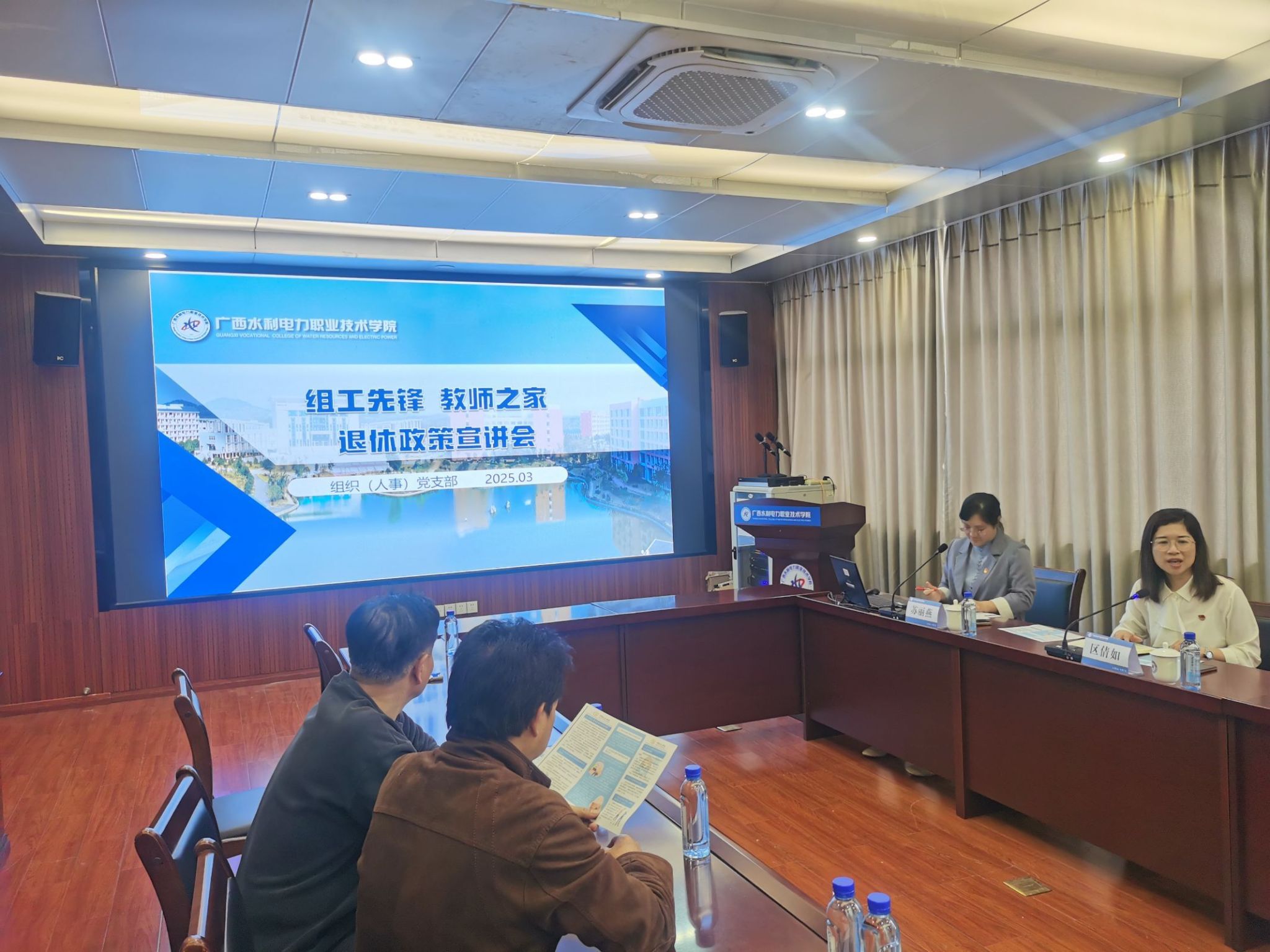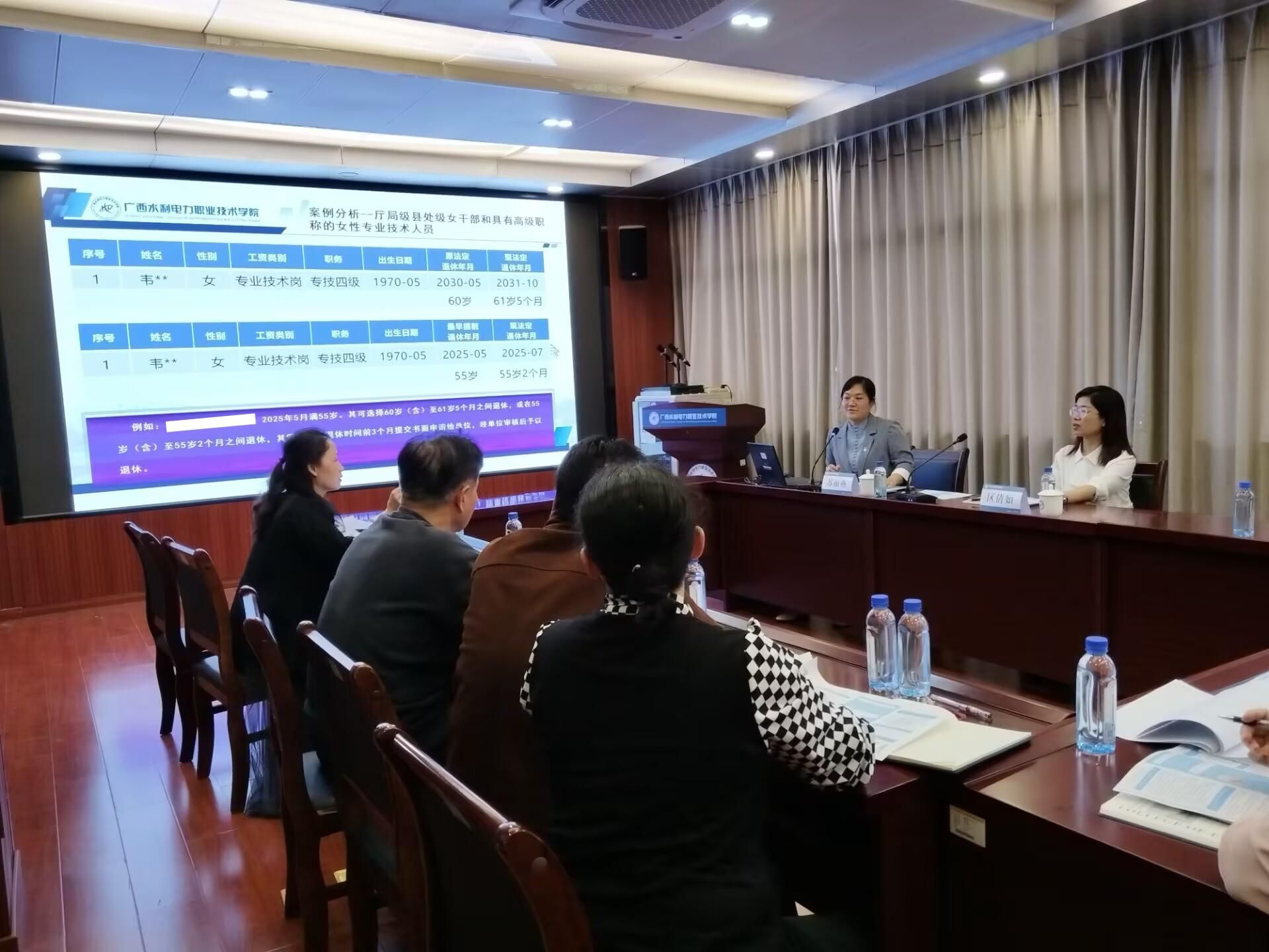 [本网讯]为深入贯彻落实国家关于实施渐进式延迟法定退休年龄政策,提高教职工对政策认识度和接受度,推进党建与业务相融合,组织人事党支部于3月14日下午在长堽校区图书馆六楼会议室组织了“渐进式延迟法定退休年龄”政策宣讲会。宣讲会由退休党总支书记、人事处处长区倩如主持,临近退休年龄的教职工、相关部门教职员工代表参加宣讲会。