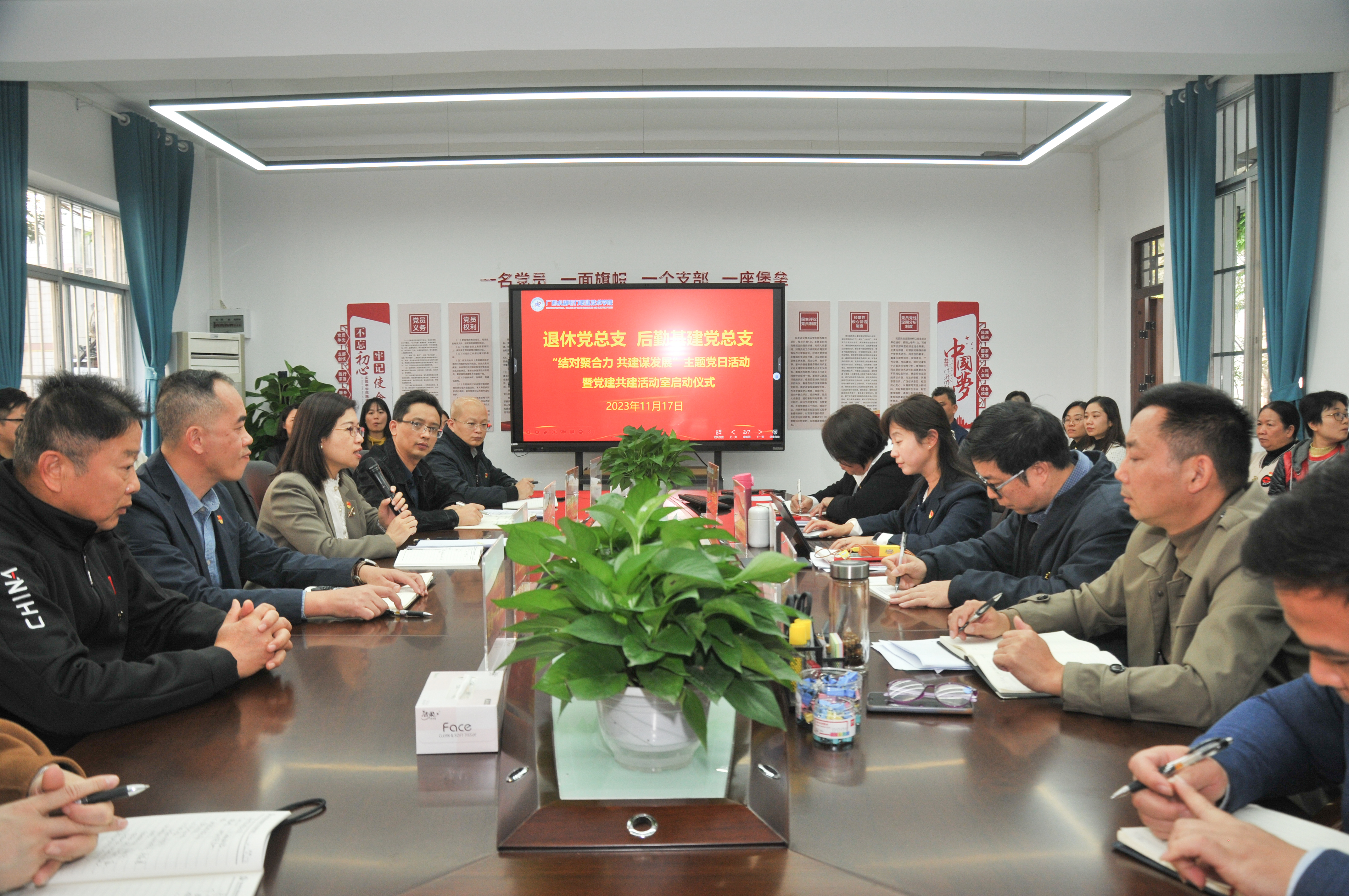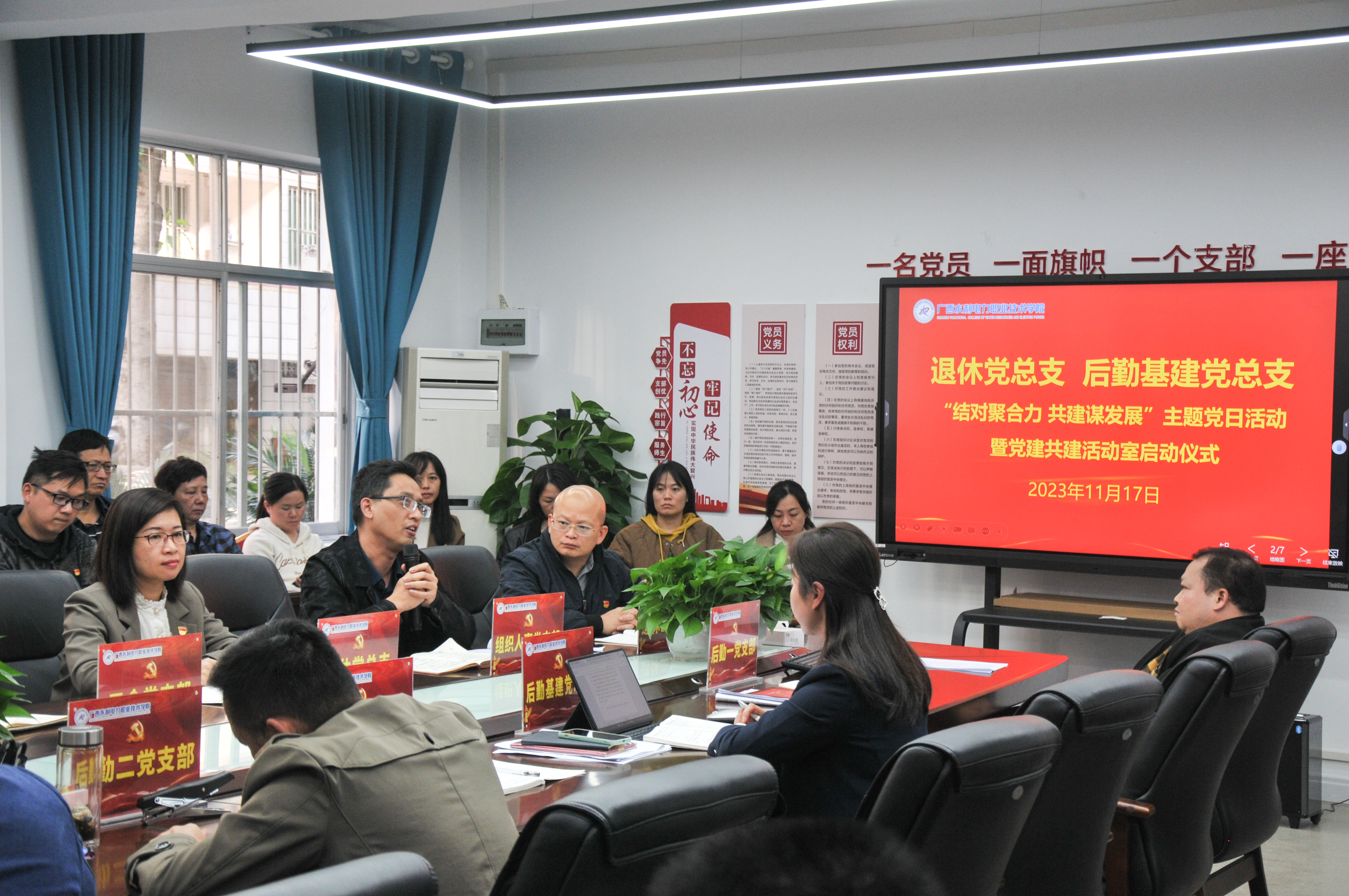 [本网讯]为促进党组织之间相互学习、互相交流、互相提升。11月17日下午,退休党总支与后勤基建党总支联合开展“结对聚合力 共建谋发展”主题党日活动暨党建共建活动室启动仪式,退休党总支书记区倩如、后勤基建党总支书记余娜及双方40余名党员参加此次活动。