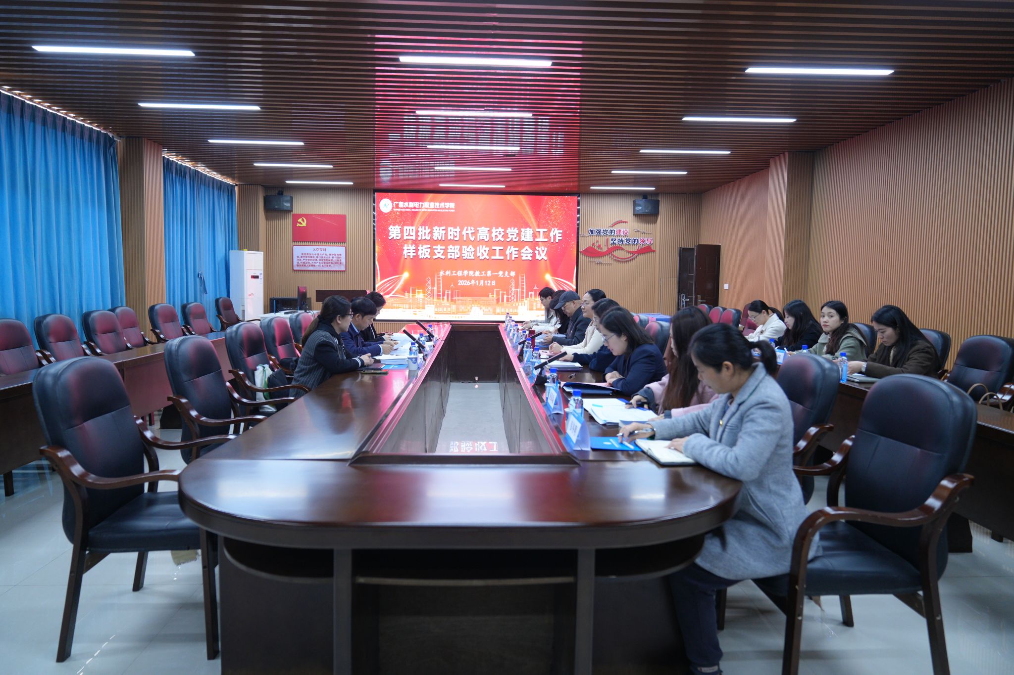 学校党委组织部(人事处)相关负责人、水利工程学院第一教工党支部支委及党员代表参加本次验收工作。(韦冬明/文 李浩/图)