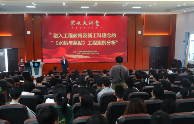 [本网讯] 3月31日,由水利工程学院刘俊红名师工作室联合慕水辅导员工作室共同举办的慕水大讲堂“专家说”系列讲座开讲了。此次讲座内容为“融入工程教育及新工科理念的《水泵与泵站》工程案例分析”,由桂林理工大学赵文玉副教授倾情讲授。