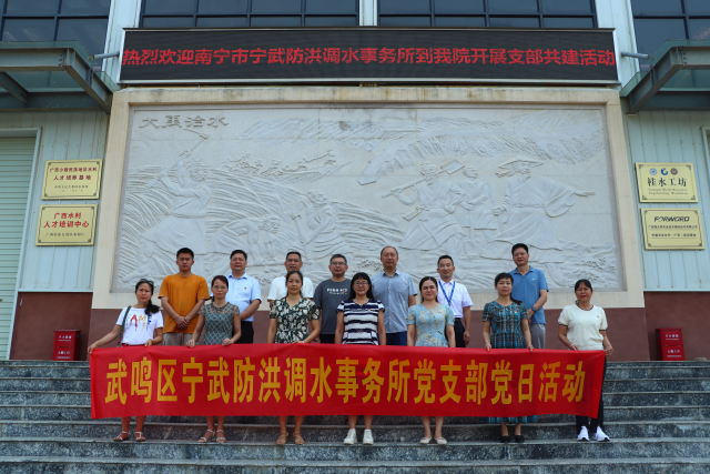 [本网讯]为全力打造水利工程学院党建工作特色品牌,7月27日上午,水利工程学院教工第一党支部、教工第二党支部与武鸣区宁武防洪调水事务所党支部开展了党建结对共建调研交流活动。水利工程学院院长助理张宪明和教师党员、武鸣区宁武防洪调水事务所党支部全体党员参加本次活动。