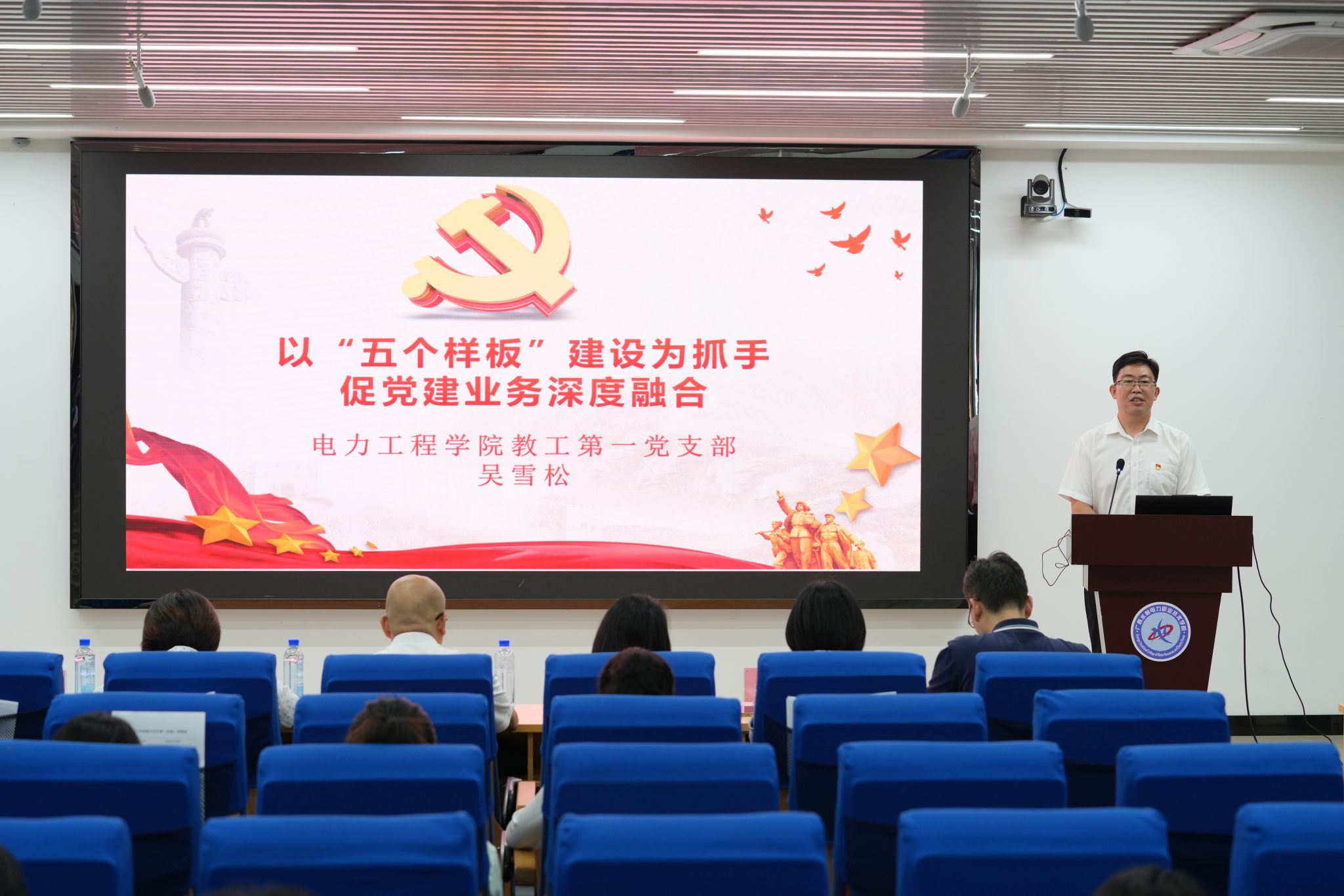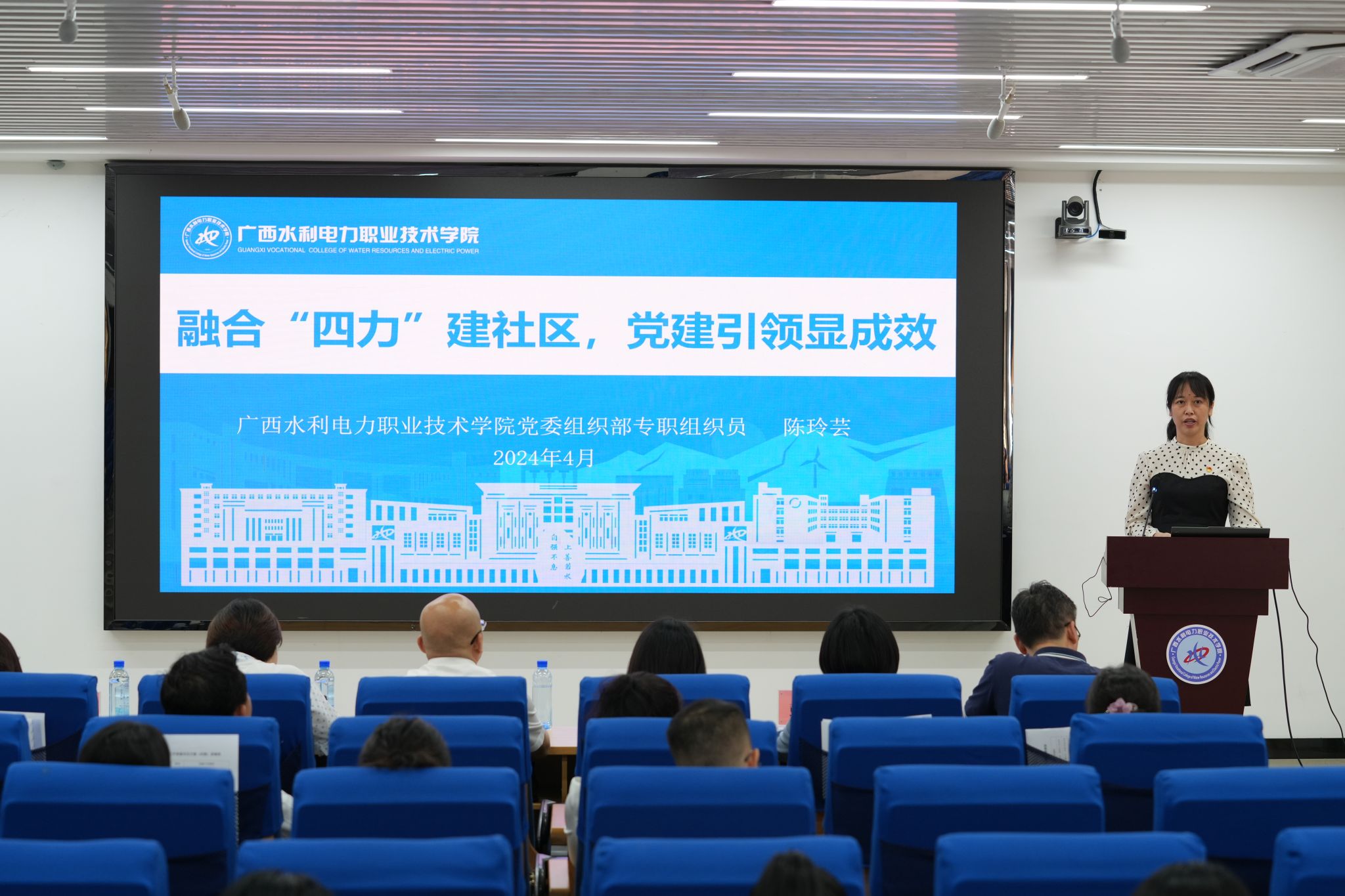 各二级学院党总支书记、直属党支部书记及委员、党员代表现场观摩比赛。