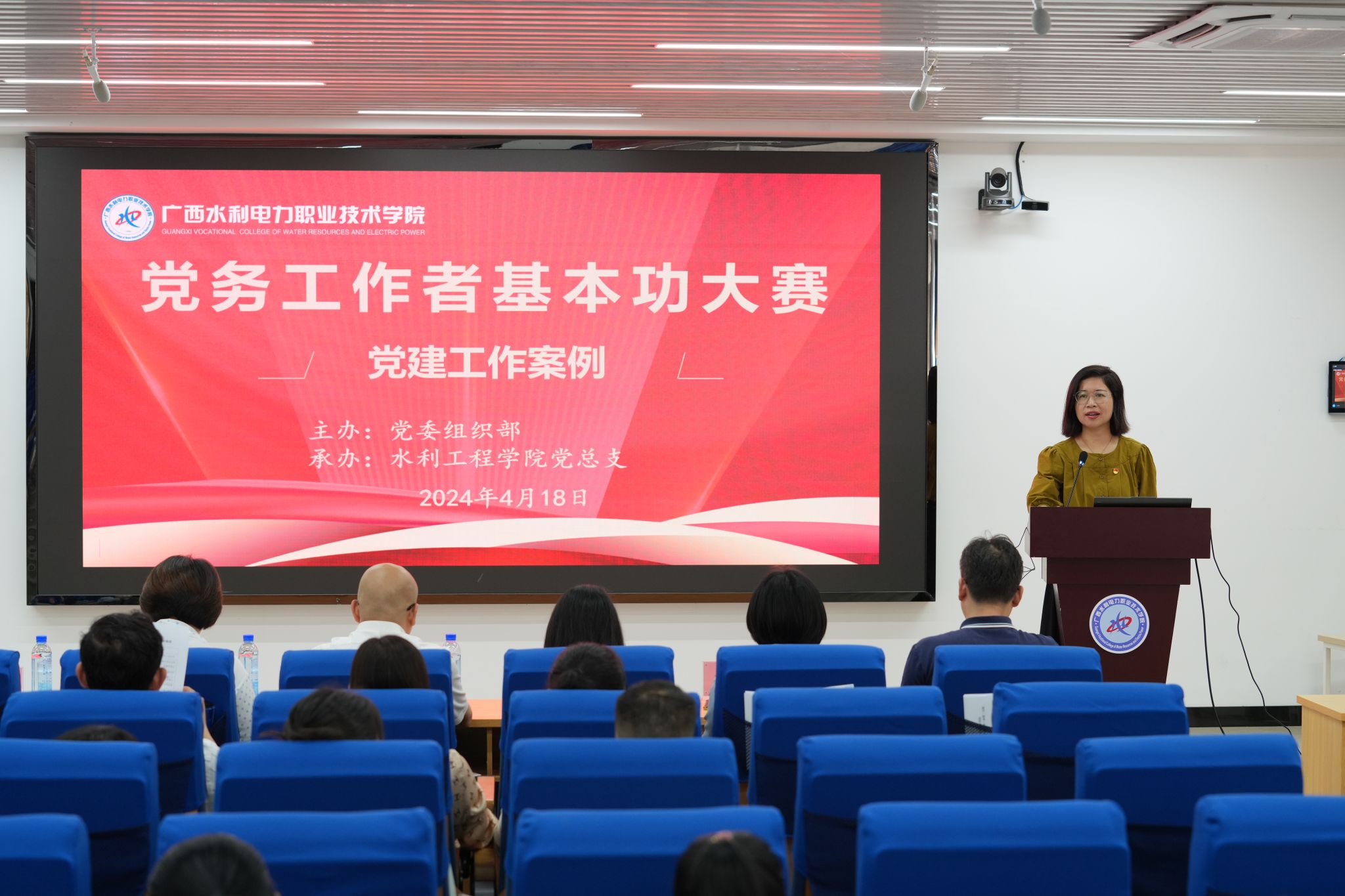 为深入学习贯彻习近平新时代中国特色社会主义思想,贯彻落实党的二十大精神和习近平总书记对广西重要要求要求,巩固学校落实基层党建“五基三化”提升年行动成果,切实提升pp电子党务工作者履职能力和工作水平。4月18日下午,学校党务工作者基本功大赛初赛在长堽校区举行。学校党委办公室、党委组织部、党委宣传部、纪委办公室和党委学生工作部领导出席大赛。大赛由学校党委组织部主办,水利工程学院党总支承办。