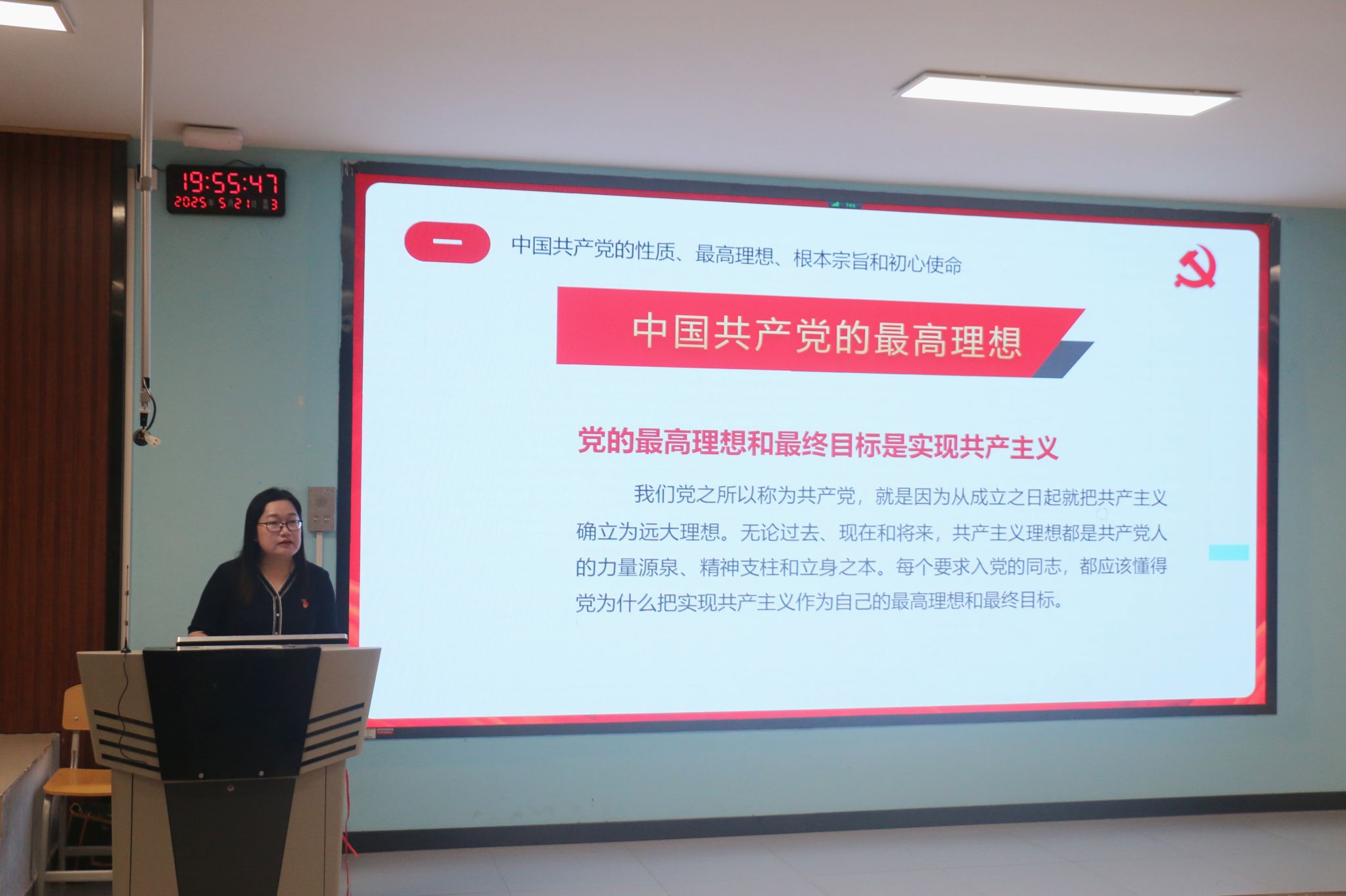 [本网讯]5月21日,水利工程学院在里建校区教学楼举行2025年入党积极分子培训班开班仪式暨开班第一课。学院党总支专职副书记李小莲、学生党支部全体党员以及133名入党积极分子参加活动。