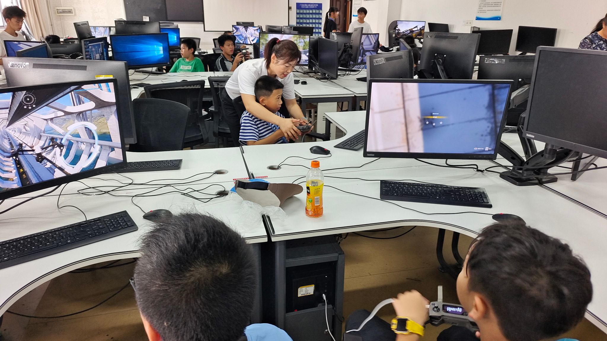 在“空天地”一体智慧教室,黄华娟同志通过模型演示与互动实验,带领学生探秘地理信息世界,直观感受地形等高线原理;大数据机房内,测绘团队的党员教师们指导学生操作无人机虚拟仿真系统,体验“未来工程师”的科技视野,让科技探索从理论走向实践;应急救援实训室里,黄文清老师细致演示急救知识,指导学生进行心肺复苏体验,掌握守护生命的关键技能;李慧婷等党员教师在安全教育馆,通过图文讲解与互动问答,开展水利、电力等多领域科普教育。活动中,孩子们积极参与职业角色扮演,沉浸式体验不同职业的工作场景。活动尾声,师生共同制作手工“永生花”, 既培养了孩子们创新动手能力,更通过跨学科实践深化了职业认知。