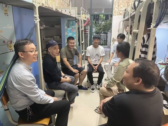 苏超副校长和工作小组深入宿舍,关心学生校园生活情况,与学生进行了全方位的深入交谈,广泛听取了同学们在生活上的反馈。针对学生最关心的用水用电、报修维修等宿舍问题,也一一进行了解答,并表示,校园安全高于一切,责任重于泰山,在遇到问题时,辅导员老师要及时帮助学生反馈问题、解决问题,学校也将会为学生做好后勤保障服务。