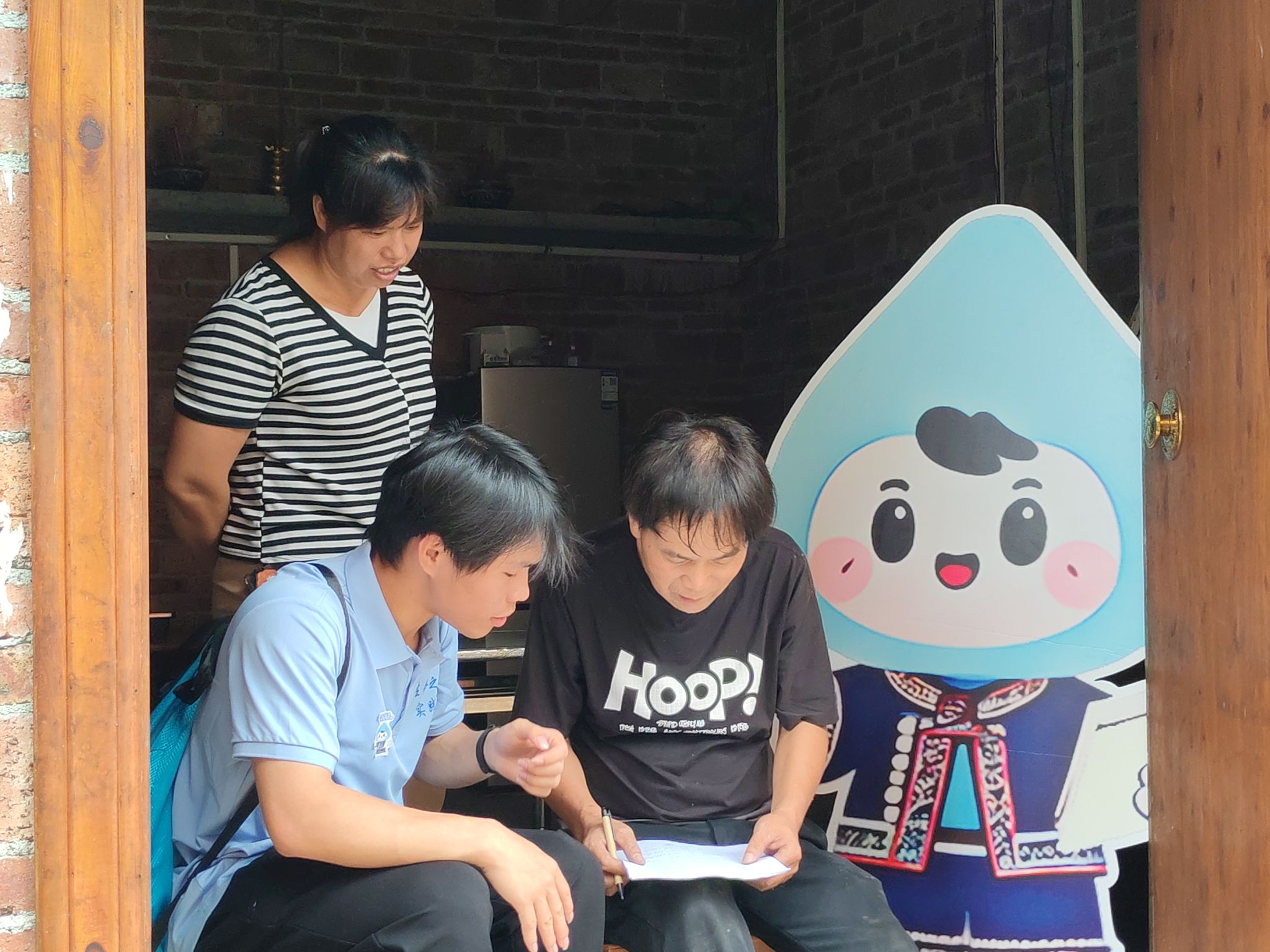 实践团成员带着“阿水哥”入户走访