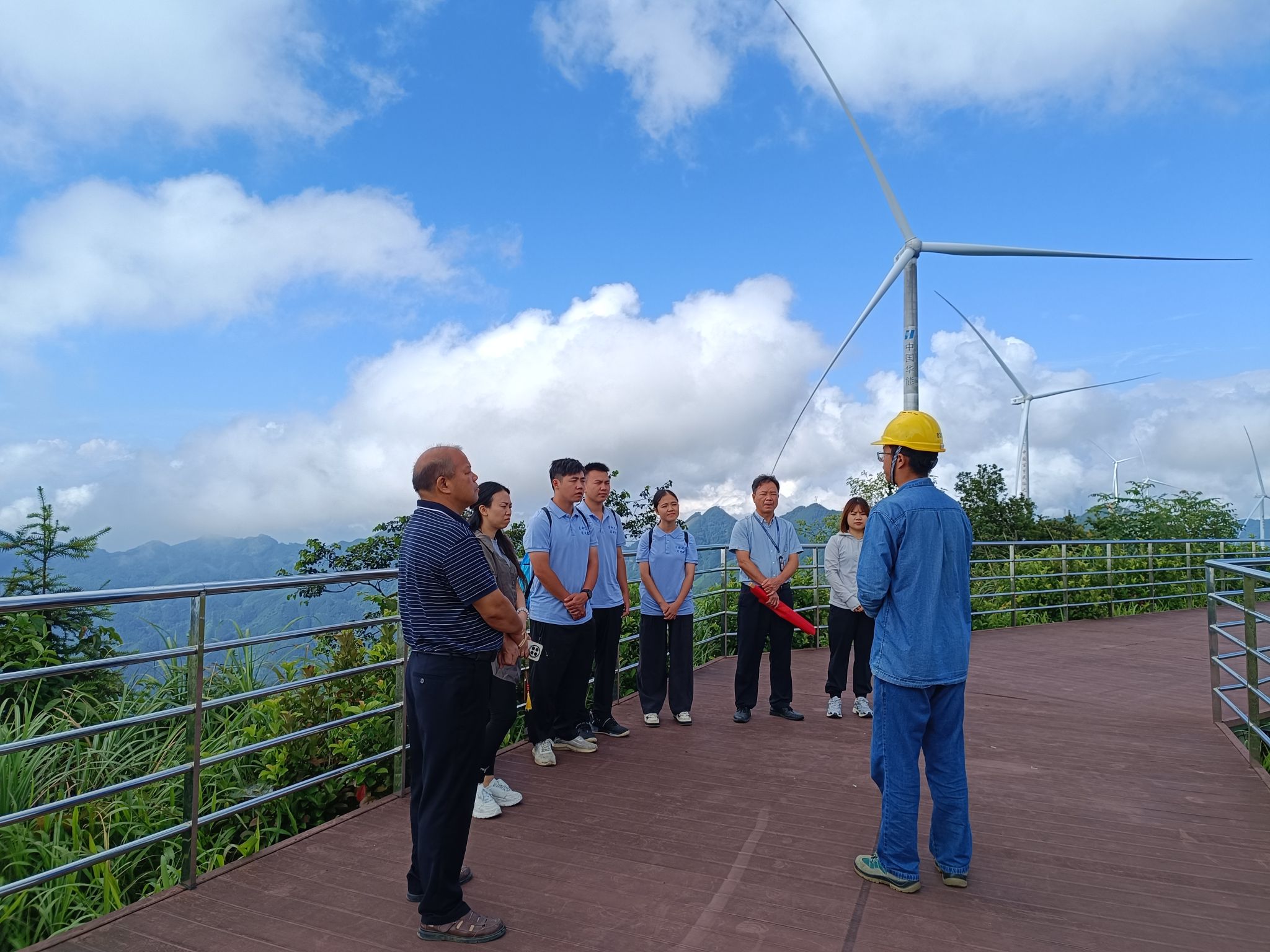 在四荣风电场,实践团重点调研了工程中水土保持措施落实情况。据悉,项目严格执行《中华人民共和国水土保持法》“三同时”制度,通过边坡防护、排水系统和植被恢复等科学设计,有效控制水土流失。技术人员现场讲解各项措施的技术规范和法律依据,使团队成员深刻体会到法律条文在实际工程中的具体应用,为后续水利普法宣传提供了生动实例。