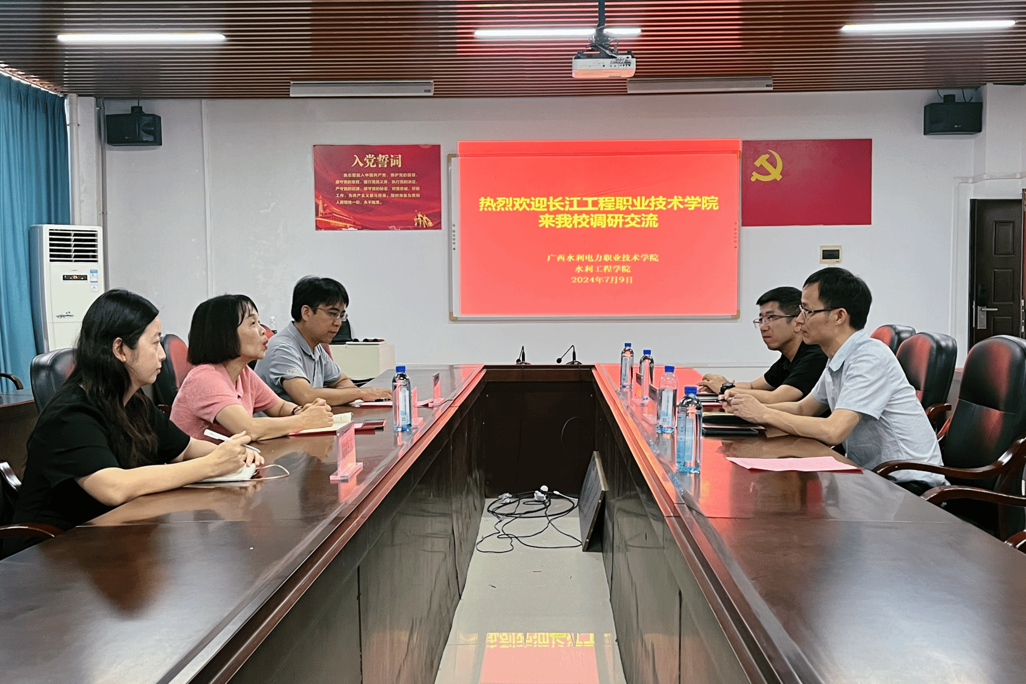 [本网讯]为加强校际交流,共享教育智慧,深化教育优质资源共享,促进高校之间的共同发展。7月9日,长江工程职业技术学院水利水电学院党总支书记徐茂林一行到学校里建校区座谈交流并进行实地参观。水利工程学院党总支书记余金凤主持会议并陪同参观。