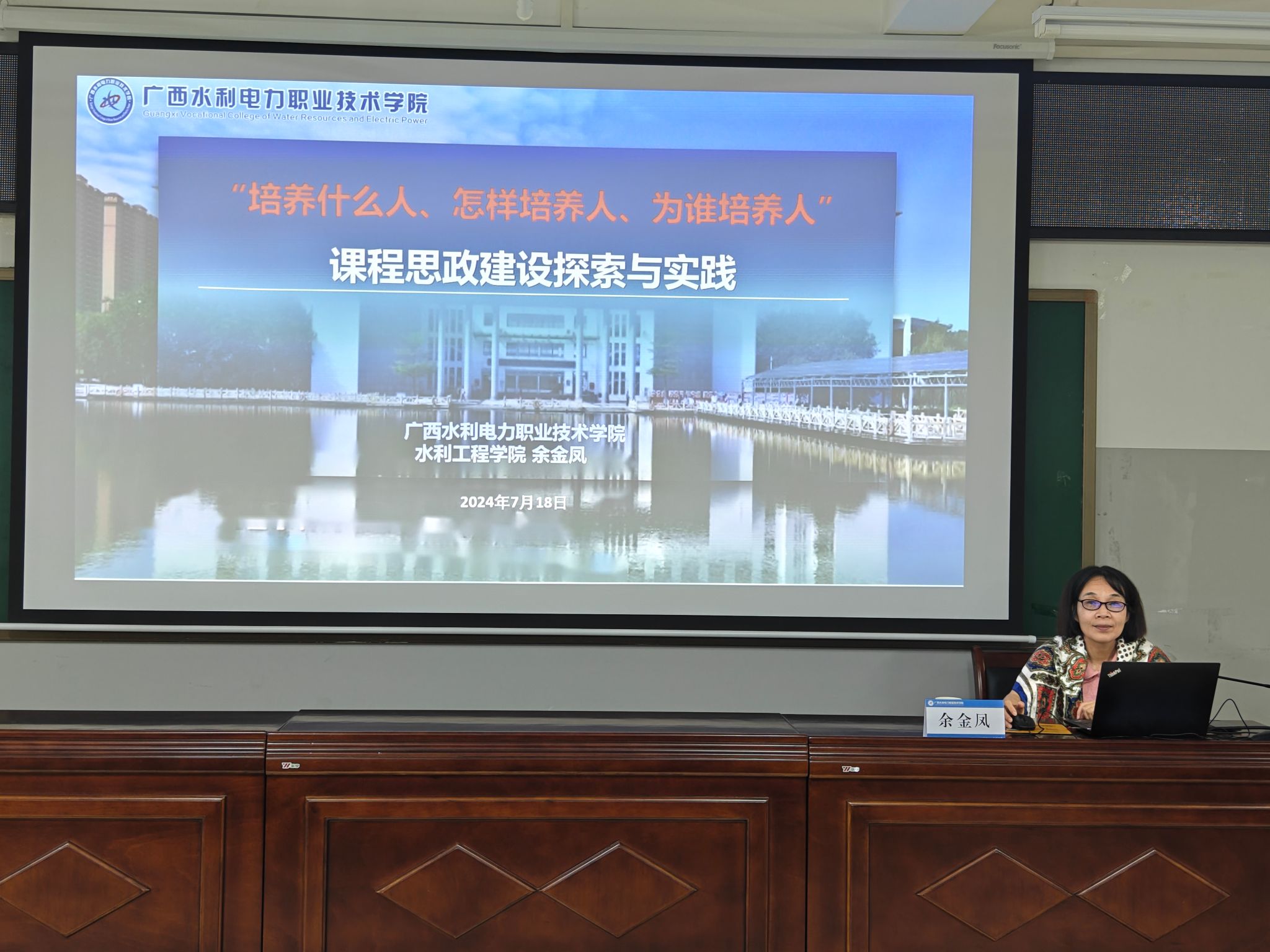 [本网讯]为进一步推动高水平专业师资的培养和发展,为区域经济的协同发展注入新的活力。6月中旬至7月中旬,广西2024年职业院校教师素质提高计划——中职自动化类专业骨干教师培训班在学校举办。本次培训班共有来自全区中职学校自动化类专业的34名教师参加。7月18日,国家级职业教育教师创新团队成员、全国课程思政教学名师余金凤教授为学员授课。