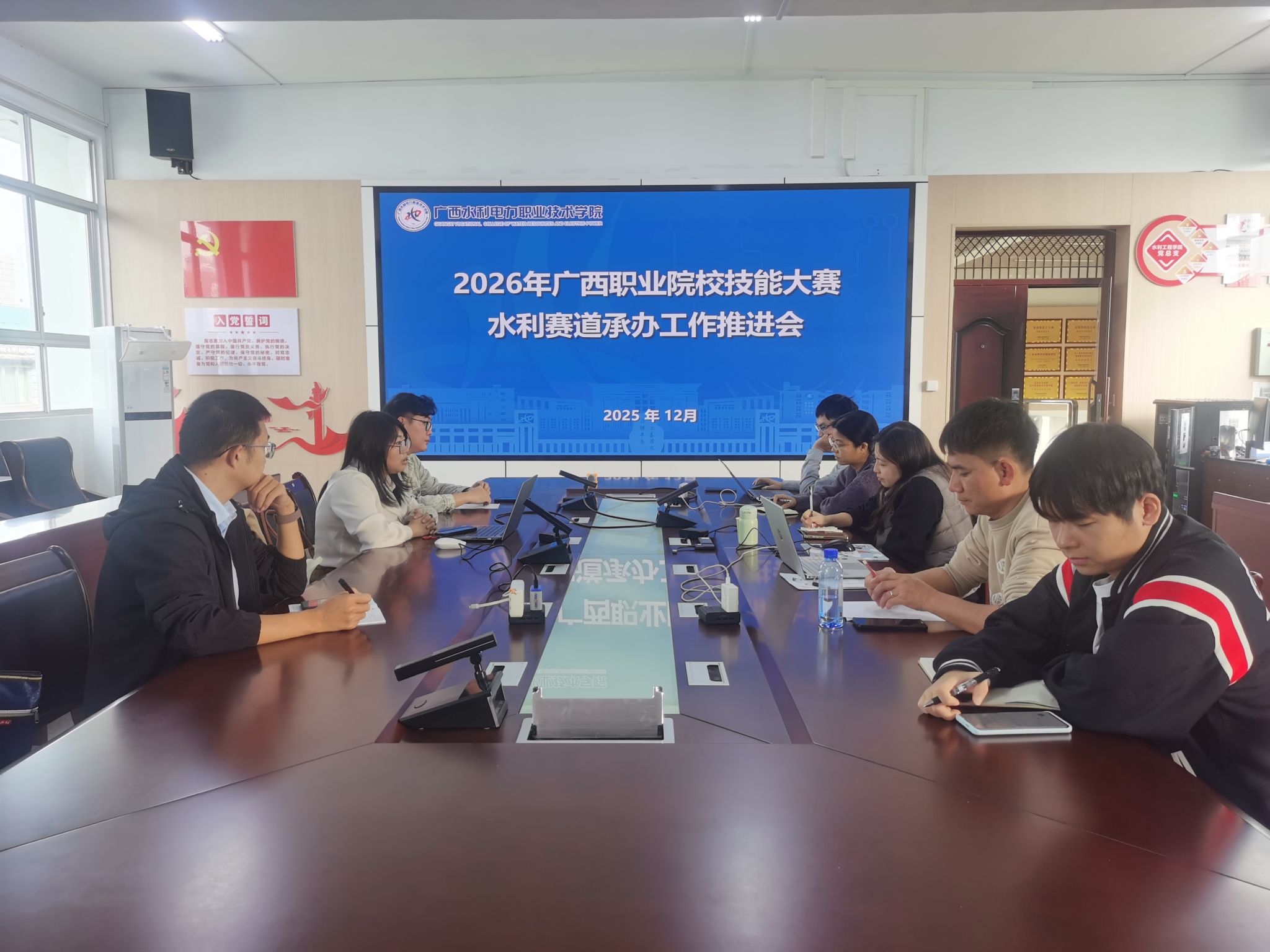 [本网讯]为扎实推进2026年广西职业院校技能大赛水利赛道承办工作,科学谋划2026年世界职业院校技能大赛相关保障事项,近日,我院召开2026年广西职业院校技能大赛水利赛道承办工作推进会暨2026年世界职业院校技能大赛预算研讨会。会议由水利工程学院副院长彭聪主持。