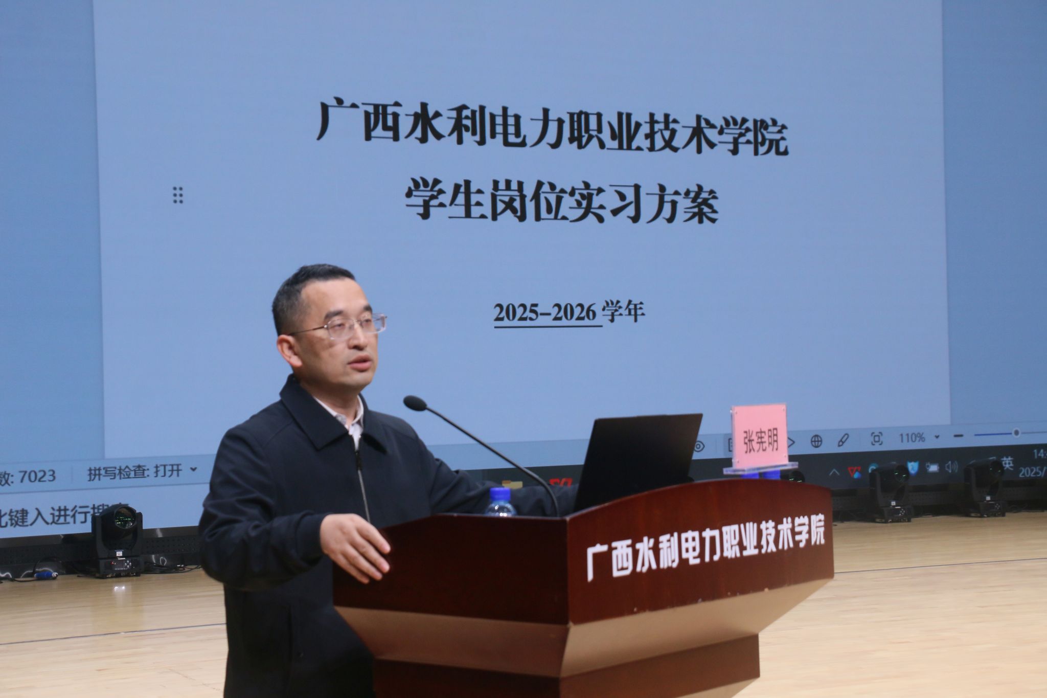 动员大会上,副院长张宪明解读《2026届毕业生岗位实习实施方案》,并就行业现状等作深入动员。他强调,同学们要认清水利行业机遇与挑战,树立正确实习态度,珍惜岗位机会,在实践中锤炼本领。