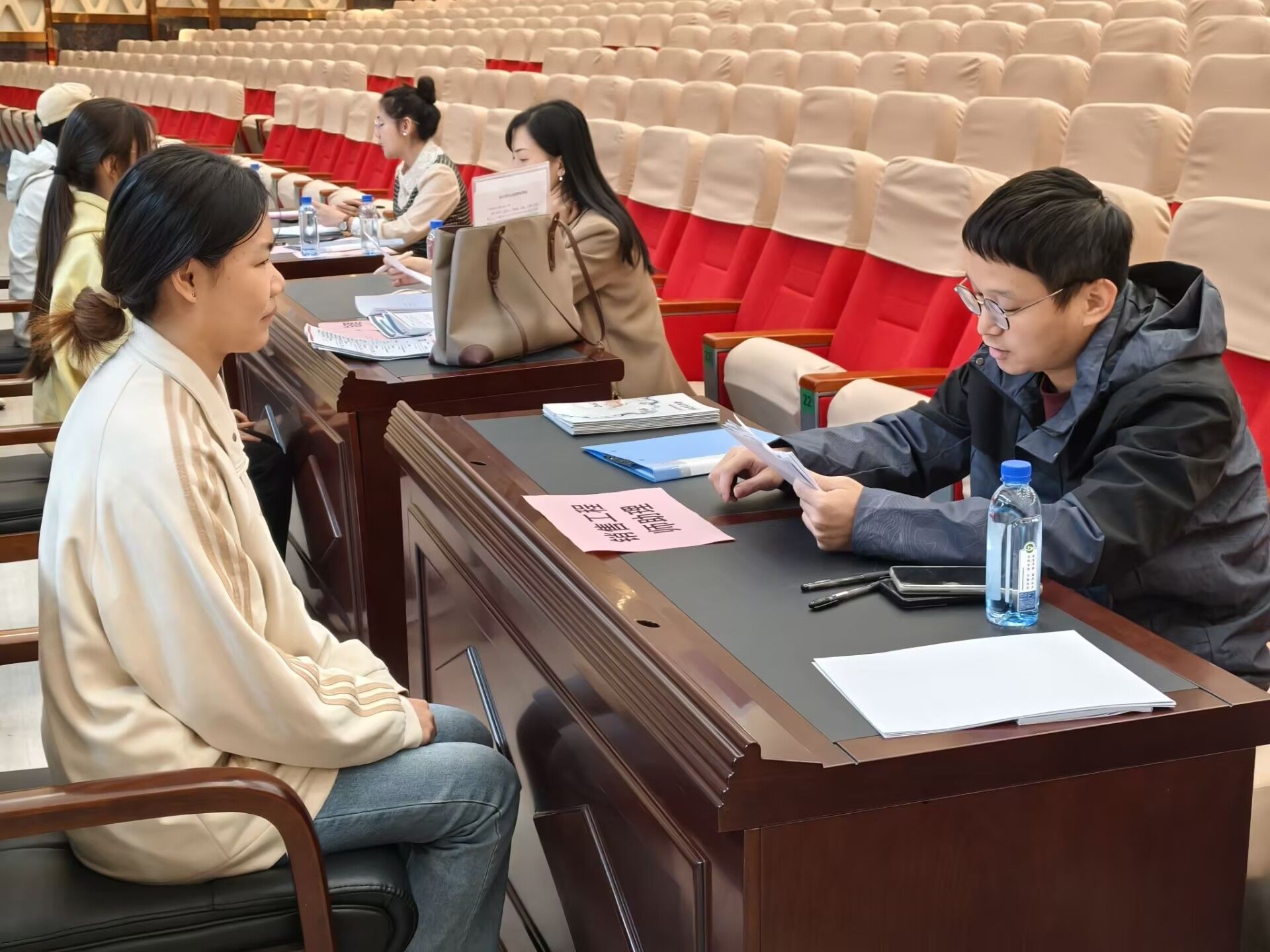 在随后举办的广西乐浥农业科技有限公司专场招聘会上,公司总经理吴绵升先生亲自带队进行宣讲。他详细介绍了公司的发展历程、业务范畴、核心优势以及人才培养与晋升机制,同时公布了此次招聘的具体岗位需求,为毕业生提供了丰富多样的实习与就业机会。宣讲结束后,企业立即组织了现场面试。同学们积极踊跃地投递简历,与招聘方展开了高效且积极的交流,现场氛围十分热烈。
