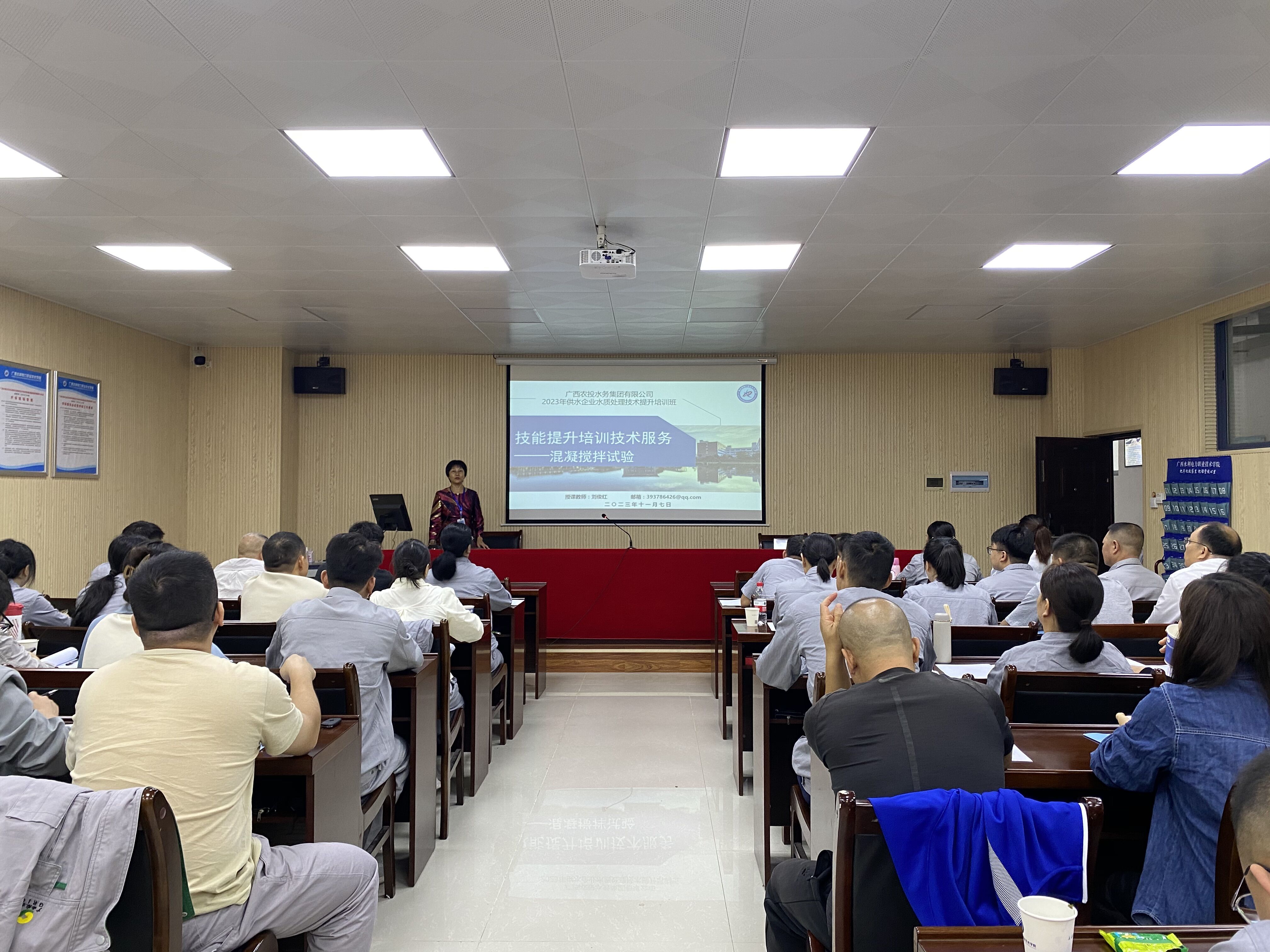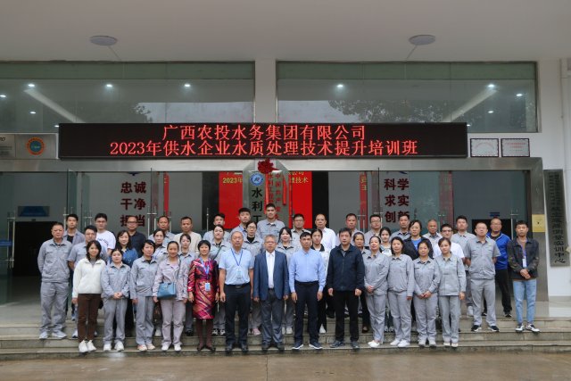 [本网讯]为全面贯彻党的二十大精神,落实中共中央办公厅、国务院办公厅《关于加强新时代高技能人才队伍建设的意见》,11月7日上午,广西农投水务集团有限公司在pp电子里建校区举行了2023年供水企业水质处理技术提升培训开班仪式。 学校副校长蒋文沛、水利工程学院副院长刘志枫、广西农投水务集团有限公司副总经理陶修斌、公司经营与安监管理部经理李玺及相关培训指导教师出席开班仪式。