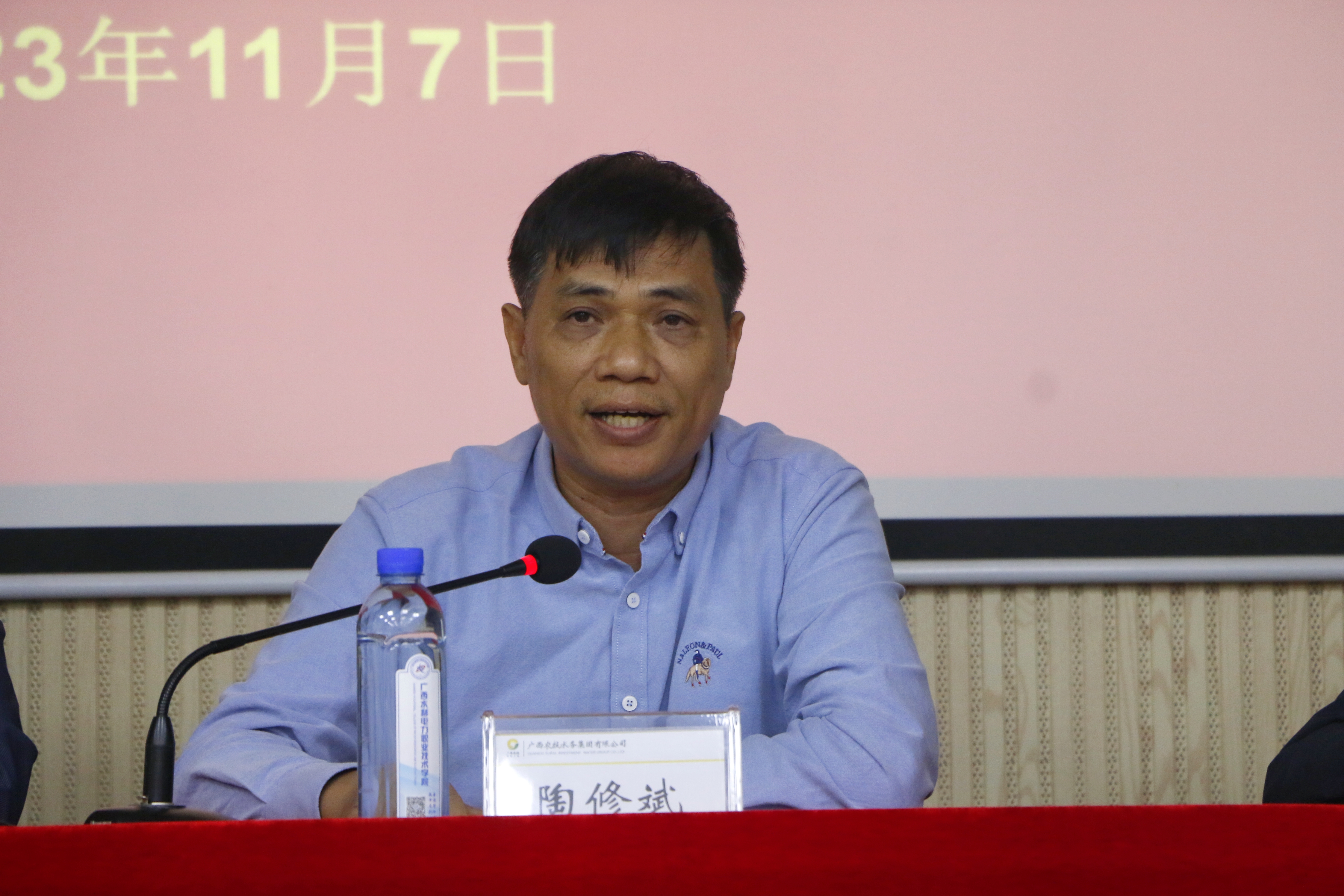 陶修斌副总经理代表广西农投水务集团有限公司就学校对本次培训的大力支持表示衷心感谢。他特别强调了水质处理专项培训的重要意义,以及本次培训对员工充分意识水质检测、水质处理工作的重要性;提出要增强业务技能,筑牢水质安全防线;指出本次培训也是结合集团公司即将在11月11日举办的技能大赛混凝实验技能竞赛项目的赛前培训,希望各位学员充分利用这短短的几天时间,发扬虚心好学、常动脑、勤动手的优良作风,加倍珍惜这次难得的学习机会,以学促赛,以赛促学,争取在比赛中赛出水平,赛出风格,赛出成绩。