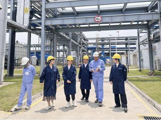 接下来,我院老师做好安全培训,穿着公司提供的劳保服,跟随工作人员参观二期厂区。参观途中,我院教师与天宜公司关于工业污水处理工艺等技术继续进行深入的探讨与交流。