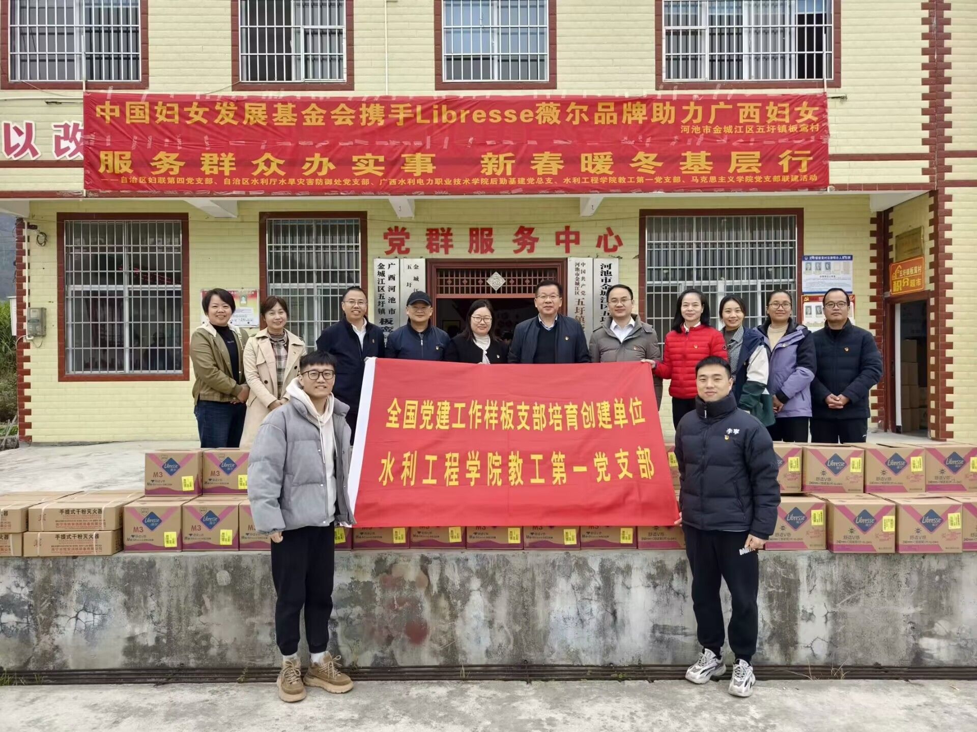 [本网讯]12月19日,水利工程学院教工第一党支部携手自治区妇联第四党支部、自治区水利厅水旱灾害防御处党支部、pp电子游戏平台官网后勤基建党总支、马克思主义学院党支部,深入河池金城江五圩镇三境村、板鸾村,开展“服务群众办实事·新春暖冬基层行”支部党建联建活动,把关怀与服务送到基层一线,切实发挥党建引领作用,推动基层党组织服务群众办实事落地见效,深入贯彻落实全国高校“双带头人”教师党支部书记“强国行”专项行动。