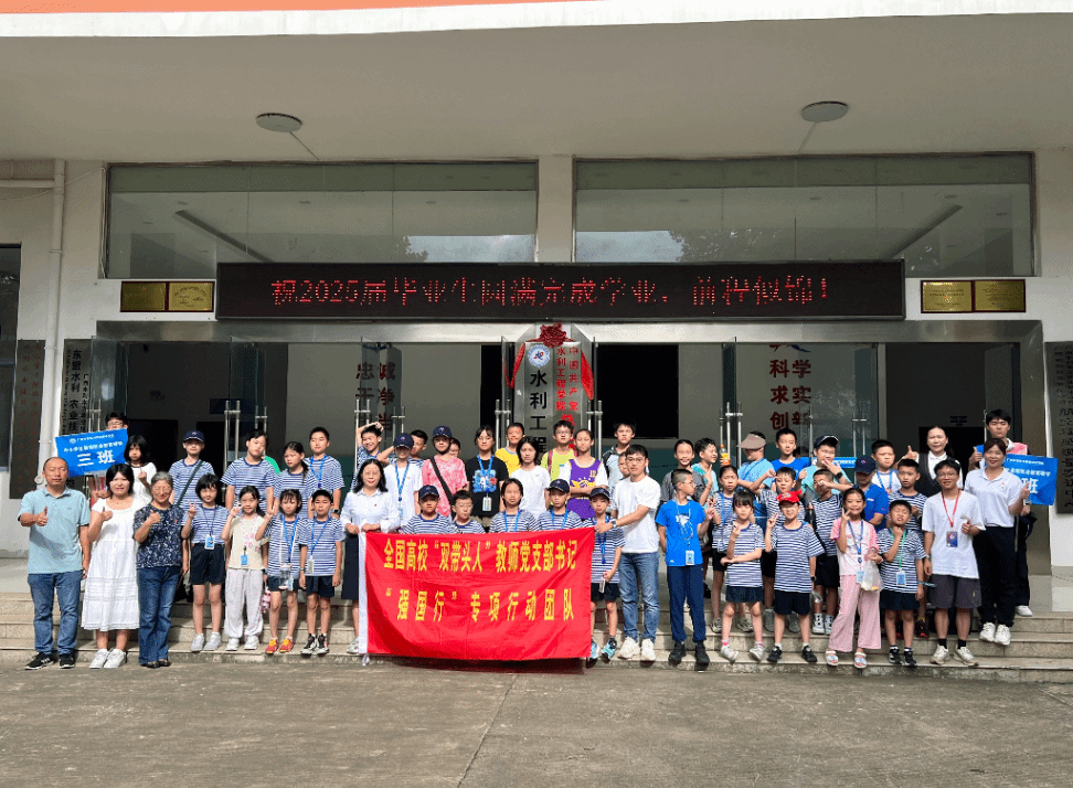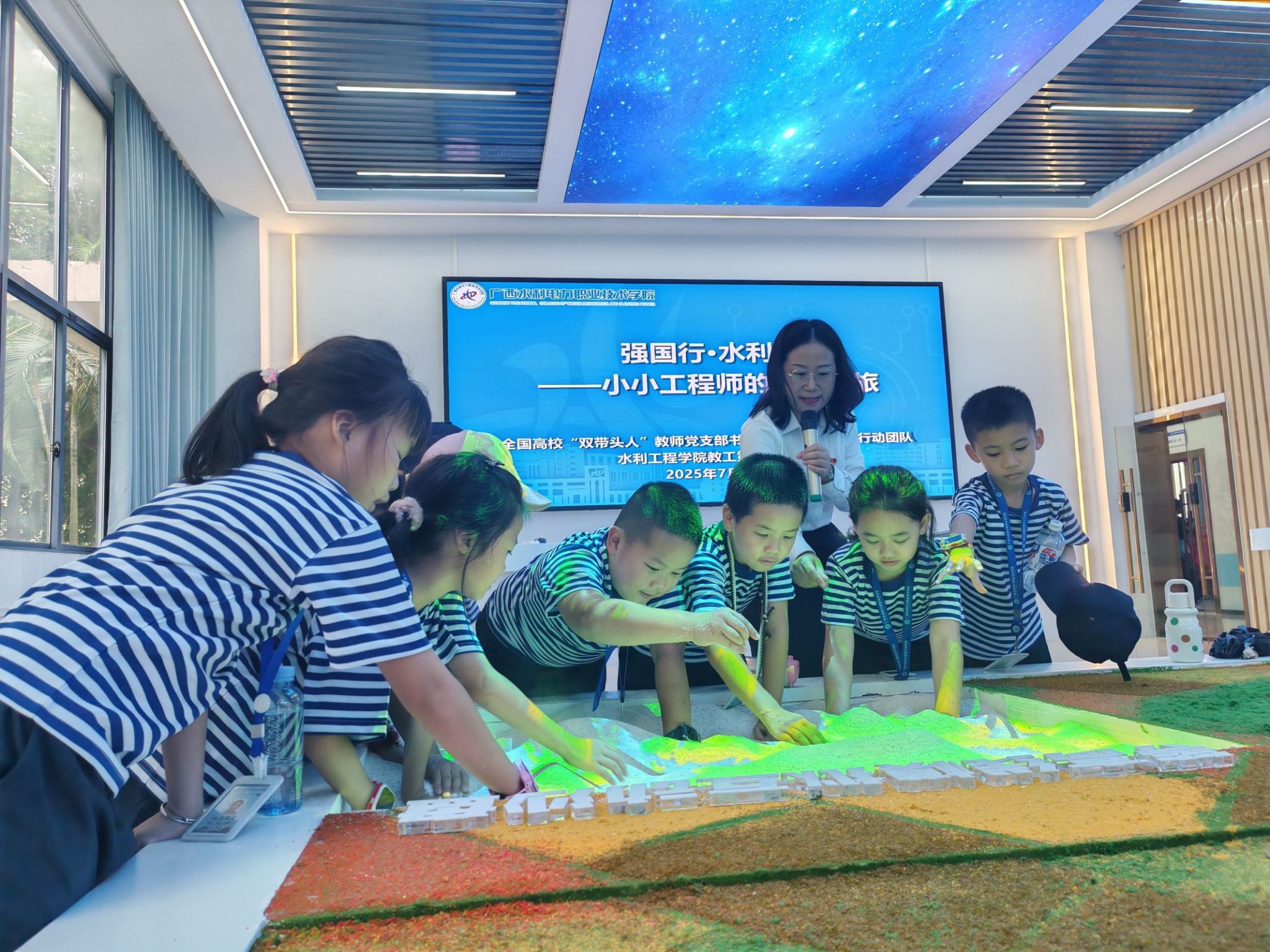 [本网讯]7月2日,水利工程学院教工第一党支部充分发挥“双带头人”教师党支部书记工作室的示范引领作用,在学院水利科普基地精心组织开展“强国行”专项行动之教育服务——中小学生暑期职业教育研学志愿服务活动。活动通过“科技+教育+实践”模式,为来自多所小学的研学团队带来了一场别开生面的职业启蒙之旅。