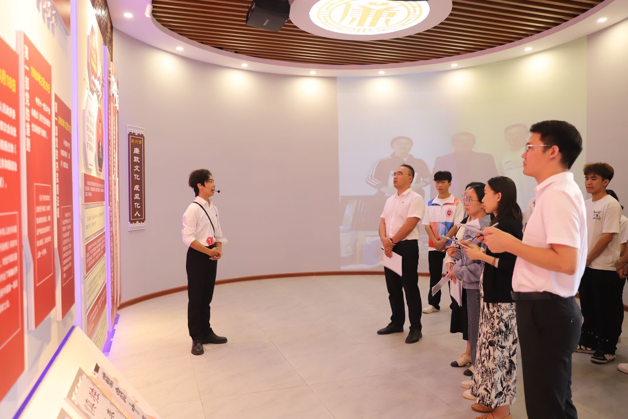 [本网讯]为更好地发挥学校廉政育人基地的作用,引导大学生树立正确的价值观和道德观,土木建筑工程学院团委于10月11日下午在里建校园廉政育人基地开展土木建筑工程学院首届廉政育人基地讲解员大赛。土木建筑工程学院党总支书记梁中超、学院党总支宣传委员李海燕、学院学生党支部组织委员苏健、学院团委书记莫潇娉以及学院心理站站长覃荣坚出席此次活动并担任评委。23、24级班级团支部成员以及班级代表参加此次活动。