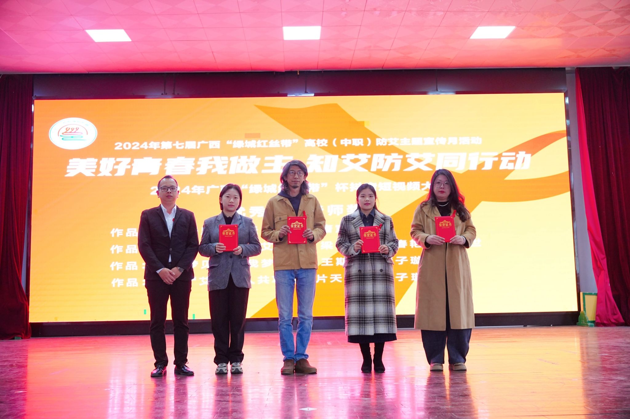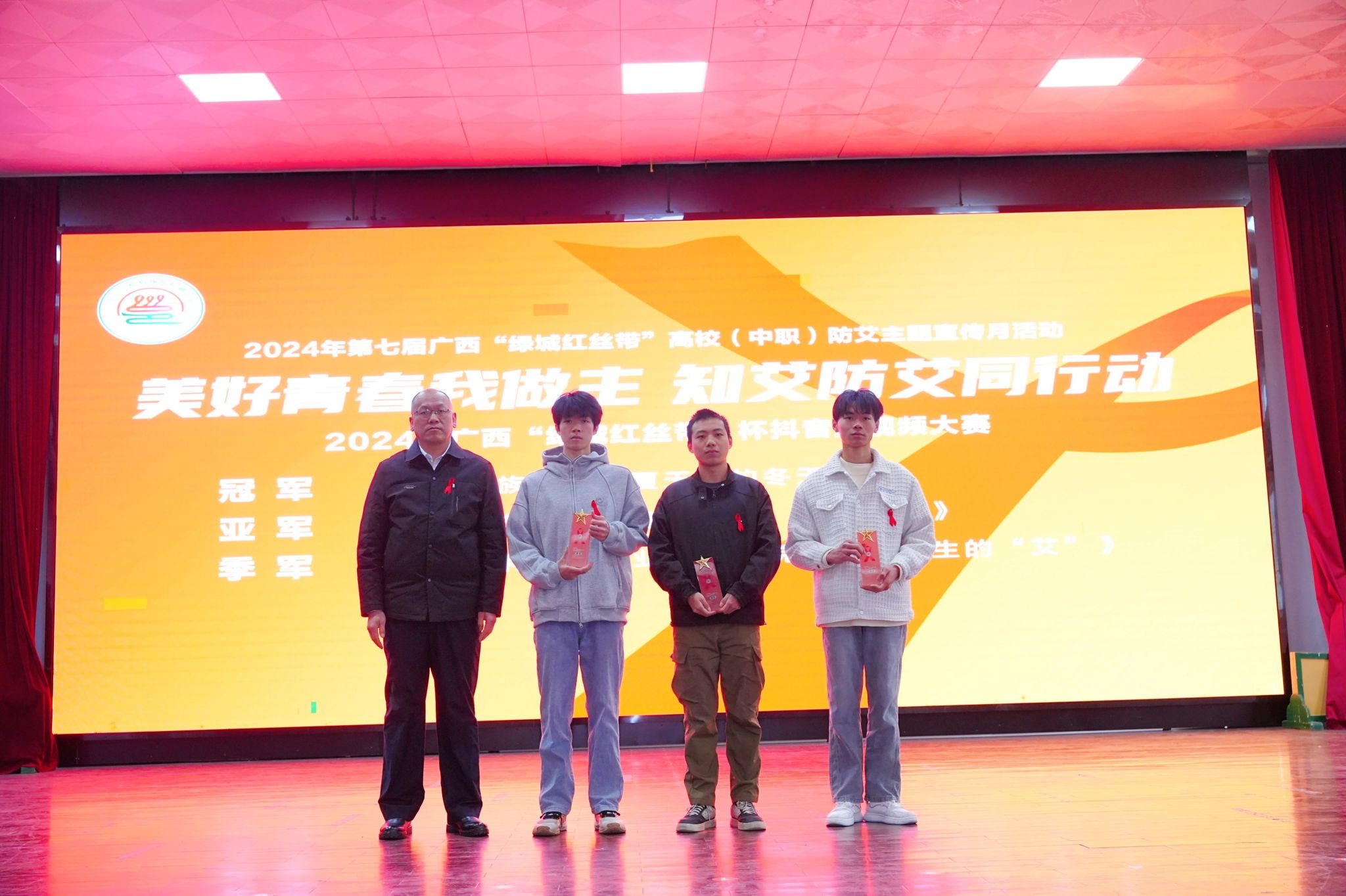 [本网讯]12月15日,由南宁市疾病预防控制中心主办的第七届广西“绿城红丝带”高校防艾主题宣传月活动在南宁师范大学圆满落下帷幕。本次大赛中,由“大拇哥”辅导员工作室指导学生创作的防艾短视频《不能发生的“艾”》(指导老师:梁中超、梁春艳、陈昌世)在广西“绿城红丝带”高校防艾主题抖音短视频大赛中脱颖而出,荣获三等奖。