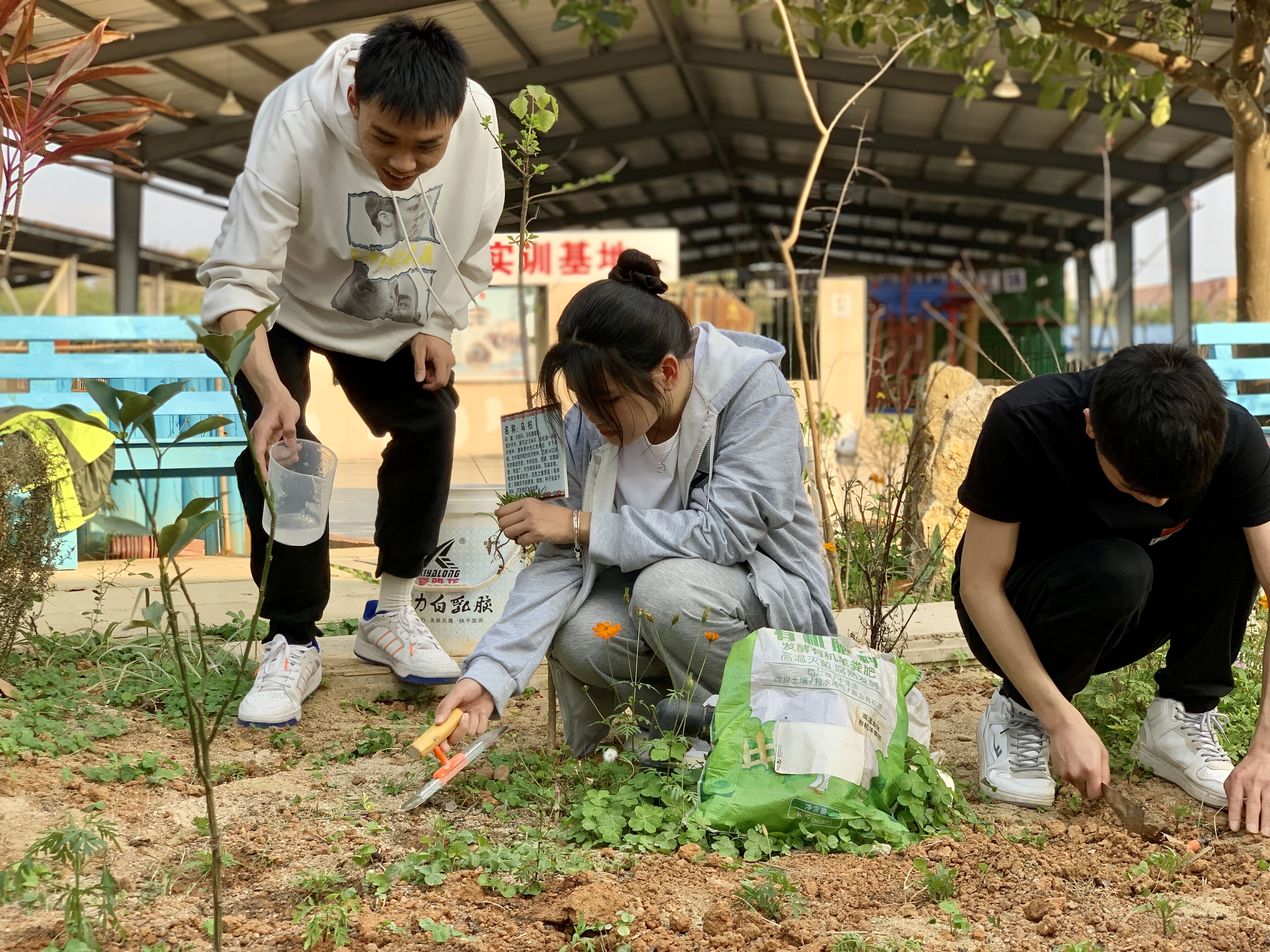 此次春耕活动将农耕园里的土地增加肥,并将新长出的花苗进行分块移栽种。师生们在刘家铭老师的指导下热火朝天地耕作。起苗、栽种、培土、浇水,师生每操作一步都小心呵护新苗,共同为匠心园增加一份绿色。