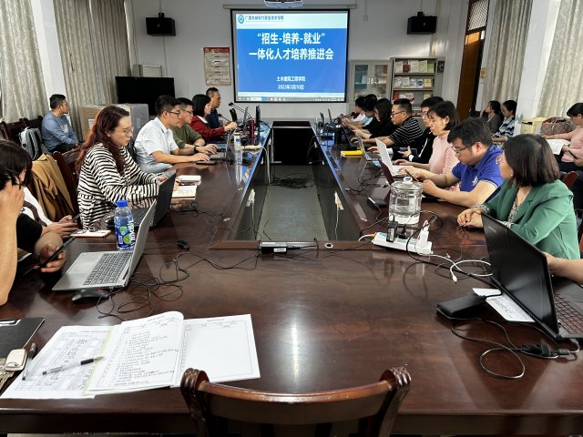 [本网讯]为进一步加大学院招生宣传和就业工作力度,改进工作作风,增强招生宣传实效,实现毕业生充分就业和高质量就业,贯彻落实学校2023届毕业生就业工作调度会精神,3月10日下午,土木建筑工程学院召开“招生-培养-就业”一体化人才培养工作推进会。会议由院长吴美琼主持,学院全体教职工参加会议。