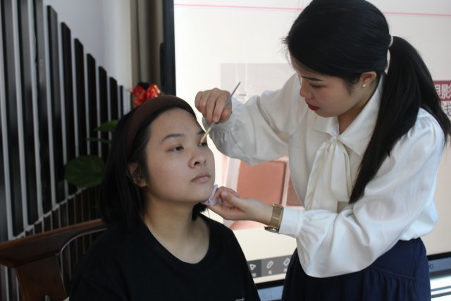 紧接着,梁春艳老师带领同学们进行现场实操,完成一个基本的妆容,让同学们通过亲身体验感受化妆的魅力。