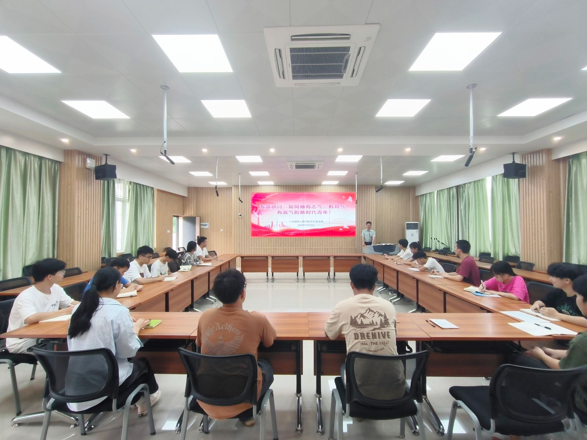 [本网讯]为做好学生党员发展和教育工作,增强青年学子的责任感和使命感,5月31日,土木建筑工程学院学生党支部在建筑实训楼202开展了以《如何做有志气、有骨气、有底气的新时代青年》为主题的专题研讨会。学院学生党支部组织委员苏健主持研讨会,20名学生党员发展对象参加专题研讨。