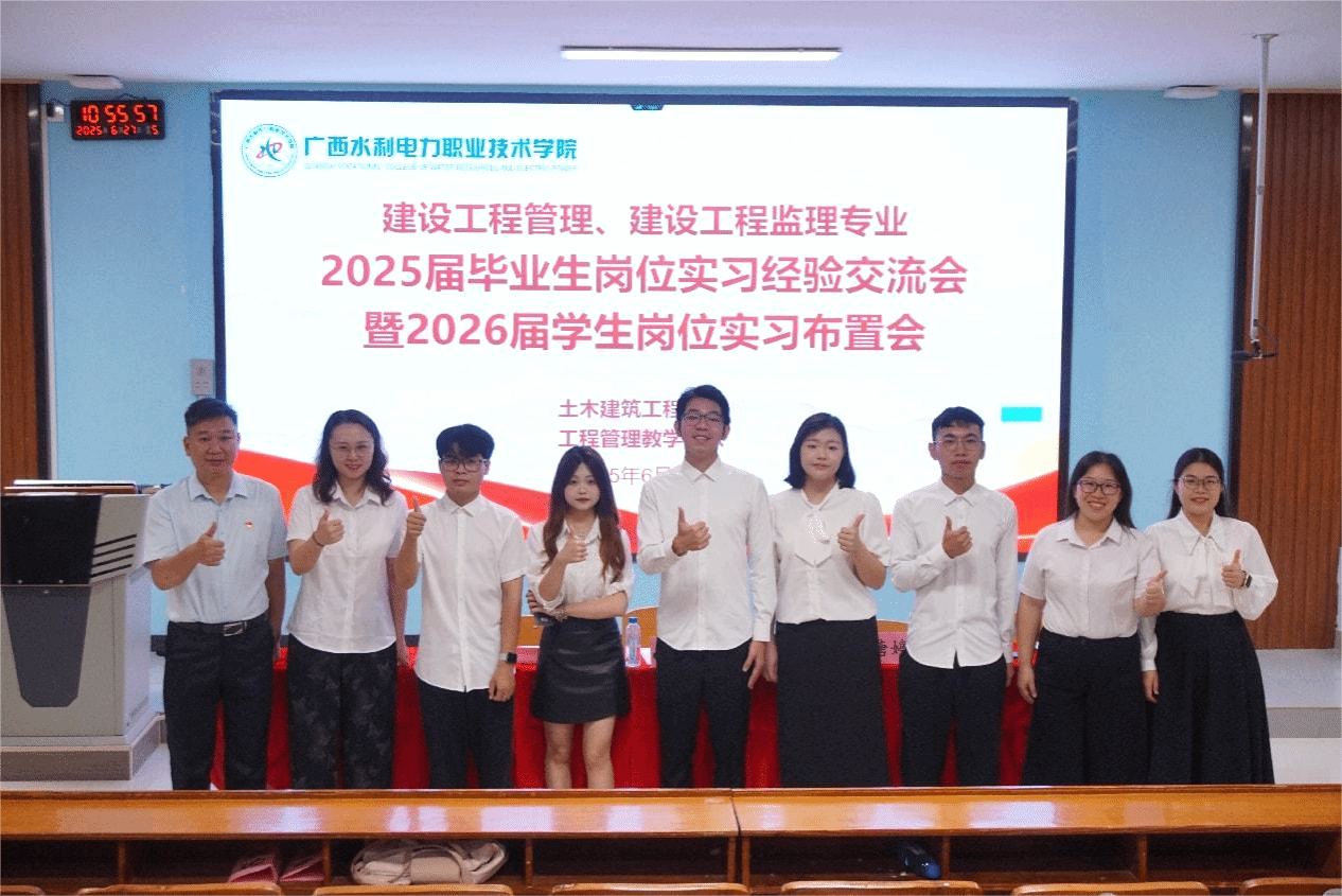6月27日上午,土木建筑工程学院建设工程管理教学团队在里建教学楼阶梯教室101召开2025届毕业生岗位实习经验交流会暨2026届毕业生岗位实习布置会。教学团队负责人陶丹、建设工程监理专业负责人解双、就业干事韦凯杰、辅导员梁春艳、苏健以及2023级建设工程管理、建设工程监理专业全体学生参与会议。